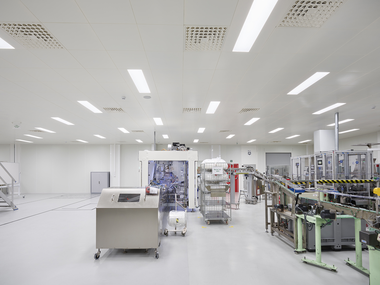 Un environnement de laboratoire exige un éclairage important, nécessaire pour les travaux souvent délicats qui y sont effectués. Le choix s'est porté sur les luminaires ETAP U2, adaptés notamment aux salles blanches. « Après avoir remplacé l'ancien éclairage fluorescent, l'espace du laboratoire bénéficie désormais d'une luminosité comprise entre 800 lux et 1000 lux, ce qui est nettement supérieur à la norme en vigueur pour les ateliers et les bureaux », explique An Van Lommel, consultante chez ETAP. « Avec une puissance installée de seulement 0,83 W/m2 pour 100 lux, la nouvelle installation permet de réaliser des économies substantielles par rapport à l'installation précédente ». Les diffuseurs U2 ont été adaptés pour ce projet à un double format, en fonction des ouvertures existantes dans le plafond en panneaux sandwich. « De plus, il s'agit de luminaires lourds, il fallait donc répondre aux exigences mécaniques », précise An Van Lommel.