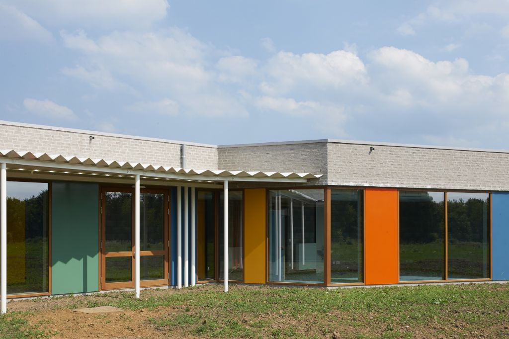Le bureau he-architectes a réalisé l’extension de la section fondamentale de l’établissement spécialisé de Flémalle. Dans ce projet, les architectes ont cherché à établir une unité, une connivence entre l’extension et l’école actuelle, et ce, tant en terme d’expression que de fonctionnement. L’extension est réalisée telle une greffe, qui s’accole au bâtiment existant et en utilise les forces pour se développer.