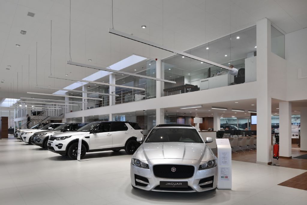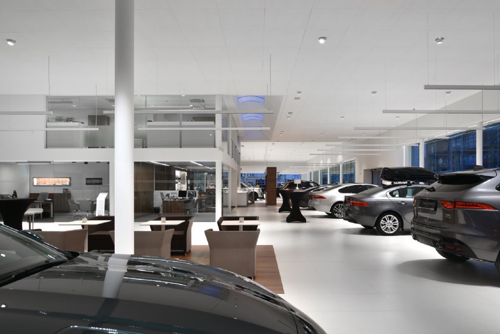 La facade a été complètement « liftée » afin de porter les nouvelles normes de Jaguar et Land-Rover tout en créant des espaces distincts réservant une atmosphère spécifique à chaque univers.