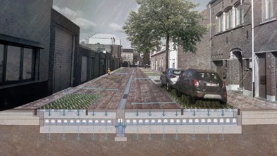 Dans la Nonnenstraat à Turnhout, une solution innovante a été mise en œuvre pour gérer les problèmes d’inondations et de vieillissement des égouts. Des blocs Fluvioblok placés sous la chaussée permettent de stocker et d’infiltrer l’eau de pluie, tandis que la nouvelle structure de la route, avec un revêtement perméable, peut traiter près de 330 m³ d’eau par hectare. Ce projet, financé en partie par la ville, offre une approche durable et résiliente pour relever les défis de la gestion de l’eau en milieu urbain.