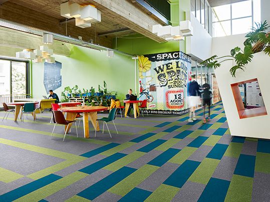 Pour favoriser la tranquillité et la communication, Forbo a également développé une dalle Flotex Acoustic Plus qui s’inscrit dans la collection Flotex Colour. Celle-ci atténue les sons d’impact et le bruit ambiant. Les employés, invités et clients peuvent ainsi se parler tranquillement ou se concentrer sur leur travail, même dans les espaces à forte fréquentation. Forbo lance également une dalle à relief dans le cadre de sa nouvelle collection. Cette dalle peut être utilisée pour ajouter des accents à la composition.