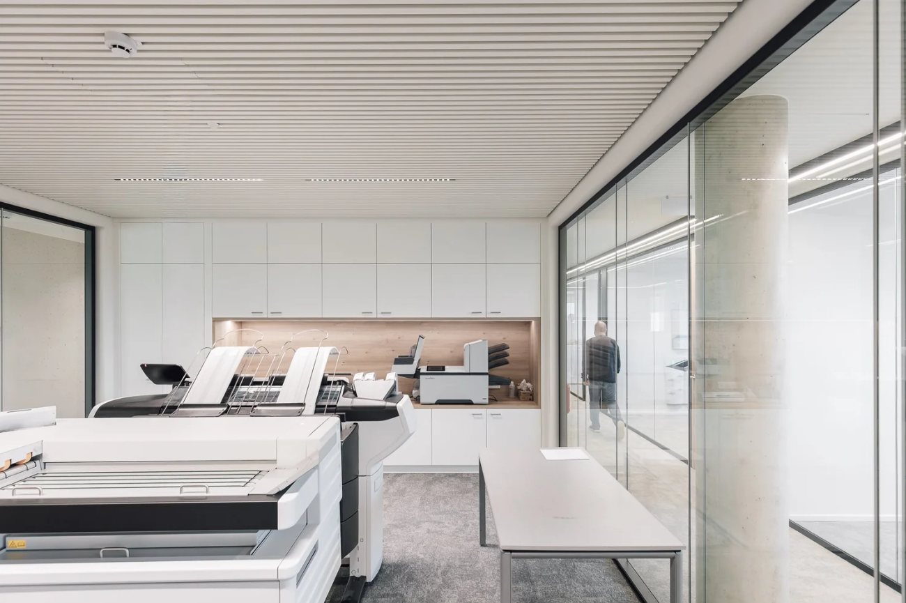 Le nouveau siège regroupe 123 postes de travail et dispose de 88 places de parking. L’organisation interne vise une utilisation rationnelle des espaces et une distribution adaptée aux besoins du maître d’ouvrage.