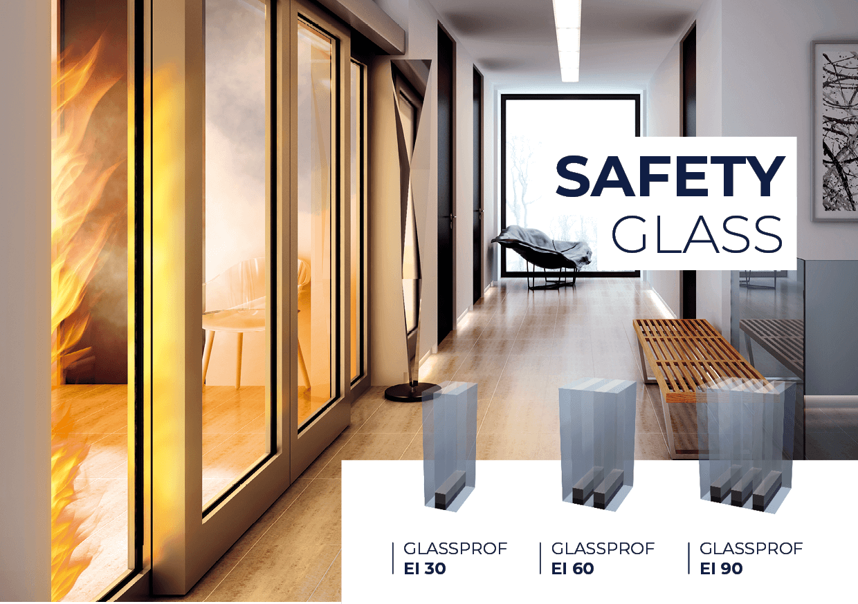 La gamme Glassprof comprend des vitrages résistants au feu classés EI 30, EI 60, EI 90 et d'autres types de vitrages isolants (double et triple vitrage) requises à la réalisation des projets de construction et de rénovation (fenêtres, portes, cloisons, façades...). Les produits Glassprof sont fabriqués en verre trempé, ce qui réduit considérablement le risque de casse pendant le transport et la pose. De plus, il n'est pas nécessaire de les recouvrir d'un film ou de les protéger par un laminé pour assurer une protection contre les rayons UV. Il n'est pas non plus nécessaire de coller les bords du verre avec du ruban adhésif en aluminium résistant à l'humidité. Les produits Glassprof utilisent un gel dédié résistant aux radiations, qui se cristallise en cas d'incendie, ce qui a permis d'obtenir un produit qui assure l'isolation et la sécurité des occupants d'un bâtiment. Parmi les autres caractéristiques remarquables du verre résistant au feu Glassprof, citons sa couleur neutre et son haut niveau de transparence (Lt jusqu'à 88%) ainsi que sa résistance aux radiations, qui a été testée de manière indépendante, et le fait que le verre ne jaunit pas avec le temps. Les solutions proposées par Glassprof ont également obtenu la classe de sécurité 1B1, la plus élevée suivant la norme EN 12600. En outre, elles garantissent un excellent niveau d'isolation acoustique, avec une réduction du bruit d'au moins 93%. Les vitrages GLASSPROF sont fabriquées à partir de verre trempé dont les bords sont automatiquement lissés.