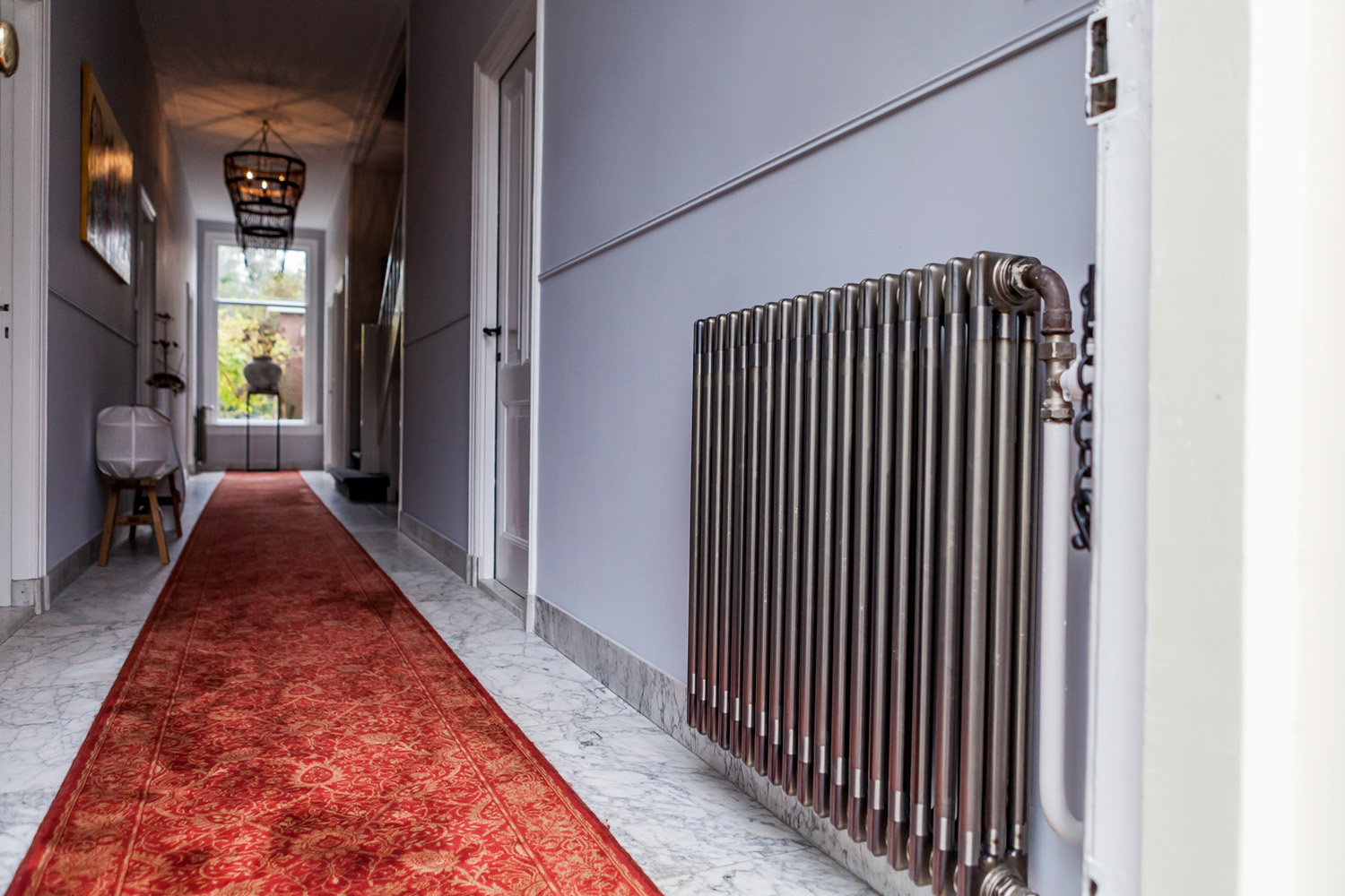 L’un des éléments clés de la rénovation a été de trouver une solution pour le chauffage. Le chauffage par le sol étant interdit dans ce monument, il a été décidé de remplacer les anciens radiateurs à colonnes rouillés par des modèles sur mesure de radiateurs Charleston de Zehnder. Ces radiateurs conviennent parfaitement à un système de chauffage basse température économe en énergie et s’intègrent harmonieusement dans le caractère historique de la villa. « Ce qui est formidable avec les radiateurs Zehnder Charleston, c’est qu’ils peuvent être entièrement fabriqués sur mesure », explique le propriétaire. « Chaque pièce a désormais son propre radiateur, adapté aux besoins en chaleur, au style et aux couleurs de la pièce. C’est comme si nous vivions désormais dans un magazine de décoration. »