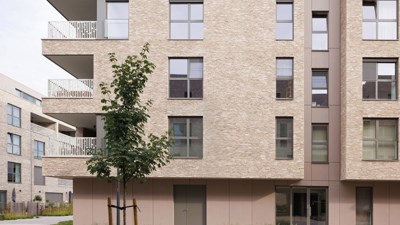 « Il s’agissait de créer un environnement résidentiel à proximité du patrimoine mondial. Il était donc très important de traiter l’environnement avec une certaine sensibilité. Ce qui se manifeste clairement dans le choix judicieux des matériaux », explique Janssens. « Nous voulions travailler avec des couleurs et des matériaux doux et naturels, tout en offrant suffisamment de texture. Le résultat est un design contemporain avec des briques nuancées gris clair, associées à du béton architectural apparent et des panneaux de façade EQUITONE [tectiva] et [linea] marron clair. Pour la finition du plafond de l’axe de promenade, nous avons également choisi des panneaux EQUITONE, de sorte qu’ils s’intègrent bien à l’ensemble. »