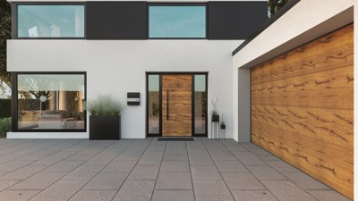 Hörmann ThermoSafe Duragrain pour des portes de garage et portes d’entrée assorties
