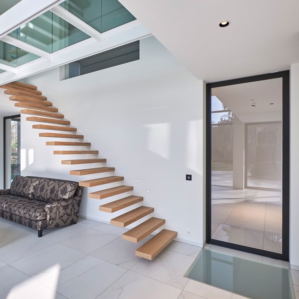 Les portes pivotent autour d’un axe vertical imaginaire. Elles donnent une certaine grandeur à la pièce en raison de leur immensité. Le seul inconvénient était par le passé qu’il fallait intégrer le système de charnière dans le sol. Ce n’est plus le cas grâce à la charnière invisible – discrète et pivotant de 360° d’ANYWAYdoors.
