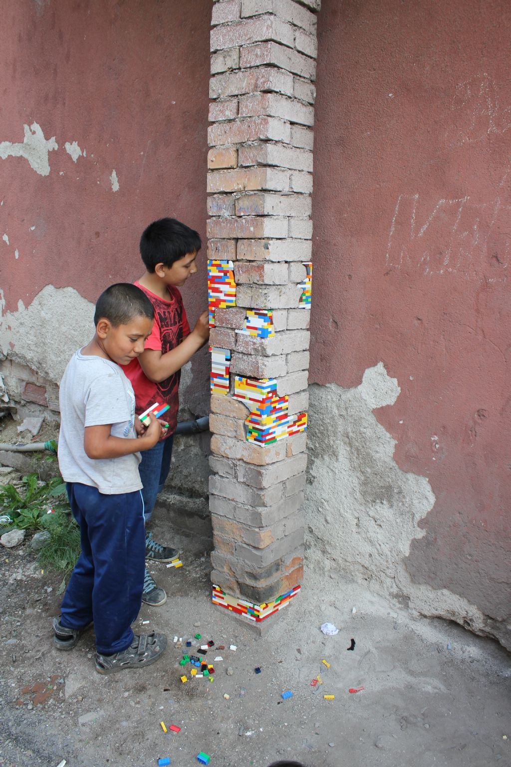 Les briques de construction Lego sont toujours aussi populaires. L'artiste allemand Jan Vormann les utilise régulièrement, aux quatre coins du monde, pour réparer des murs et des briques endommagés.