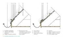 - de réaliser, en pied de versant, un détail évitant les accumulations d’eau au niveau de la sous-toiture en intégrant la volige de pied de versant dans l’épaisseur des chevrons ou en la coupant en biseau (voir figure 1 en illustration de cet article)