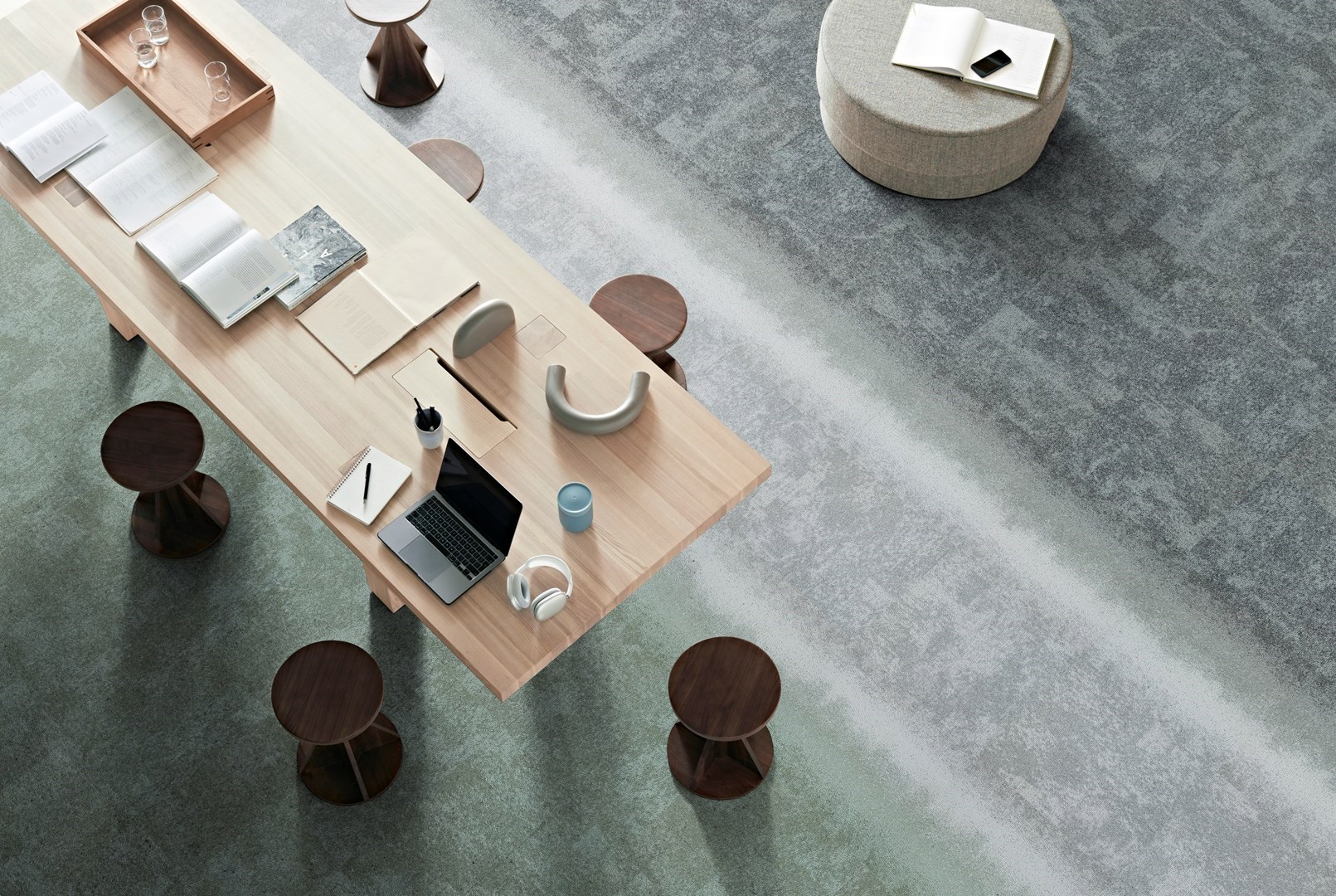 Connected Ethos utilise du nylon 100% recyclé et est neutre en carbone grâce à au programme Carbon Neutral Floors d’Interface. Elle complète donc parfaitement la gamme déjà existante du fabricant de revêtements de sol, qui se compose exclusivement de sols neutres en CO2 et même de certains sols, à l'empreinte carbone négative.