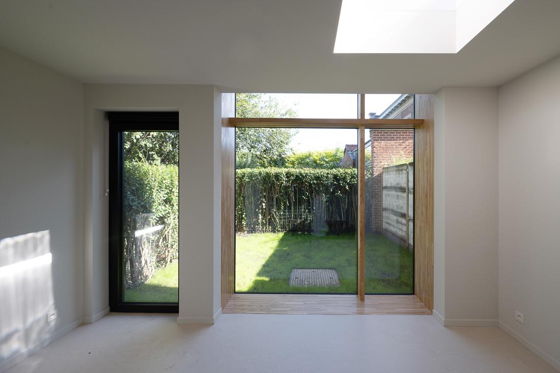 Les façades à rue ont été restaurées de manière à conserver leur caractère patrimonial d’origine, mais elles ont été isolées par l’intérieur. Les façades arrière ont été pourvues d’annexes contemporaines dans le respect du rythme de la cité. Elles ont de larges baies vitrées encadrées de bois. Celles-ci offrent beaucoup de lumière et le contact visuel avec la nature environnante. L’extension arrière respecte le rythme des façades et l’aspect urbanistique de la cité-jardin. Les maisons sont pourvues d’un jardinet arrière.