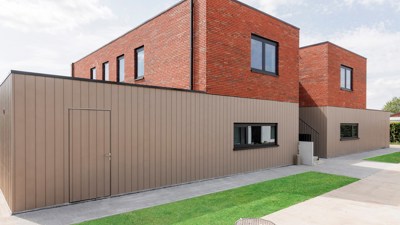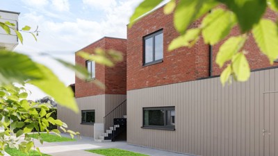 À proximité du centre de Ruiselede, dans un lotissement existant entre les rues Toekomstlaan, Molenstraat et Groenestraat, deux nouveaux bâtiments ont été érigés. Chacun d'eux abrite cinq logements sociaux composés de deux chambres à coucher, ainsi que d'un espace extérieur privé. L'aspect extérieur de ces constructions témoigne de la parfaite alliance entre le logement social et une ingénierie architecturale innovante. En effet, la façade présente une finition soignée, avec une élégante combinaison de sidings Cedral Click Wood de couleur brun atlas et de briques de parement aux nuances variées. Cette réalisation démontre ainsi que l'habitat social peut s'associer harmonieusement à des choix architecturaux astucieux.