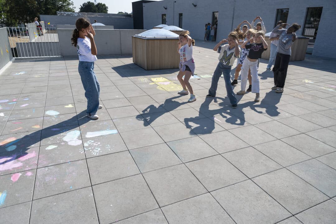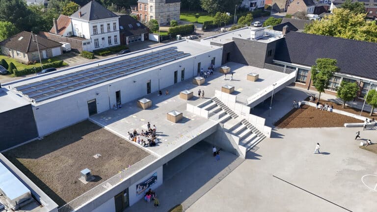 À Evergem, une nouvelle école primaire a été mise en service. Grâce à une extension et une rénovation bien pensées, un bâtiment flexible, circulaire et fonctionnel a vu le jour. Les espaces extérieurs ont également fait l’objet d’une attention particulière : une cour de récréation a été aménagée sur le toit avec Dreen®Nxt de Zoontjens, garantissant une surface stable et sûre.