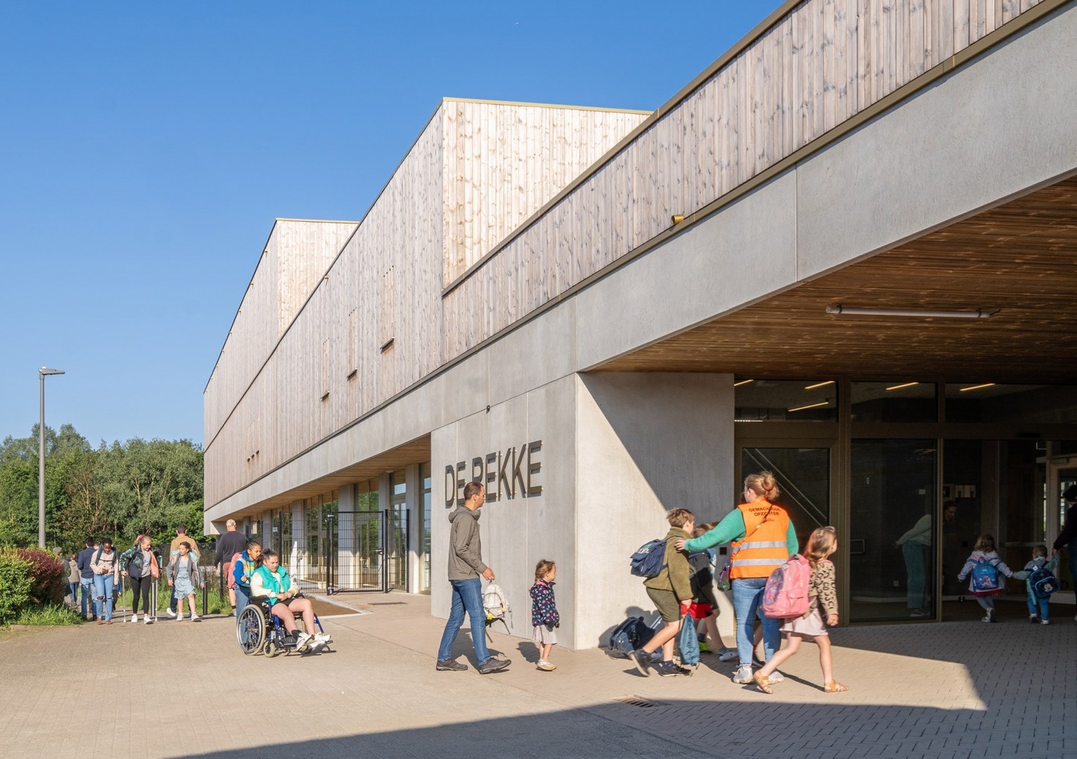 Grâce à sa technologie unique de transformation du bois, Kebony contribue à l'élaboration de la norme en matière de construction durable. Le processus breveté transforme de manière permanente et durable le bois tendre en une essence de bois comparable, voire supérieure, au bois dur tropical. Les architectes, entre autres, utilisent volontiers les produits Kebony, qui se prêtent parfaitement à la construction de terrasses et à la finition de façades, et qui sont assemblés de manière réversible. Nous en trouvons un parfait exemple chez nous, à Stabroek, où le bureau d'architecture anversois ADAM a appliqué le bois de Kebony comme revêtement de façade d'une nouvelle école.