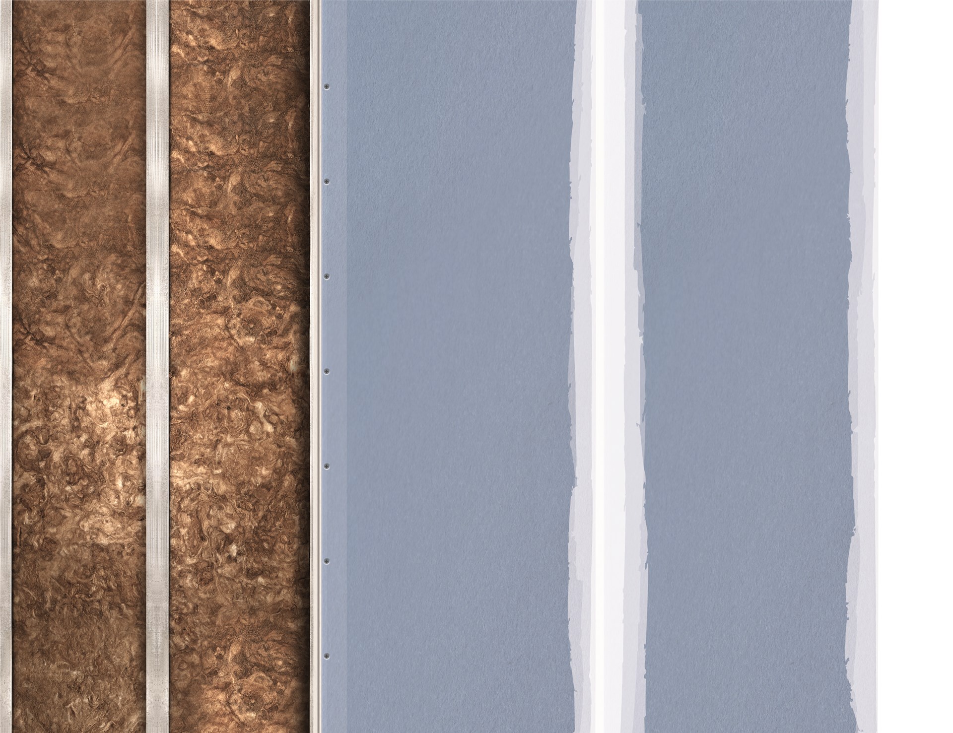 Outre leur solidité, les plaques de plâtre combinées à des profilés métalliques et à une isolation en laine de verre offrent une résistance au feu élevée (EI 60) et d'excellentes performances acoustiques (jusqu'à 61 dB). Tous les détails de la construction figurent dans les certificats d'essai spécifiques. Même l'humidité des salles de bains, des toilettes et d'autres environnements humides ne dérange pas la plaque imprégnée. Y a-t-il une présence directe d'éclaboussures d'eau ? Dans ce cas, il est recommandé de traiter le panneau avec une émulsion d'étanchéité.