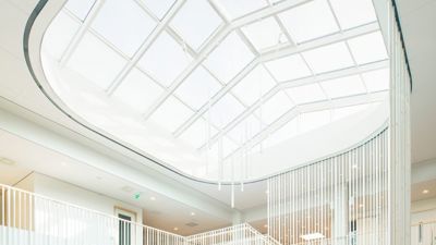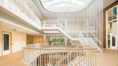 Le projet a accordé une attention particulière à l’impression d’espace, tant à l’intérieur qu’à l’extérieur. Un sentiment que viennent renforcer la verdure et les terrains de sport qui entourent le bâtiment. Les travaux ont débuté début 2016 et la réception du nouveau bâtiment a eu lieu en juillet 2017. L’école accueille environ 1 200 élèves de l’enseignement secondaire.