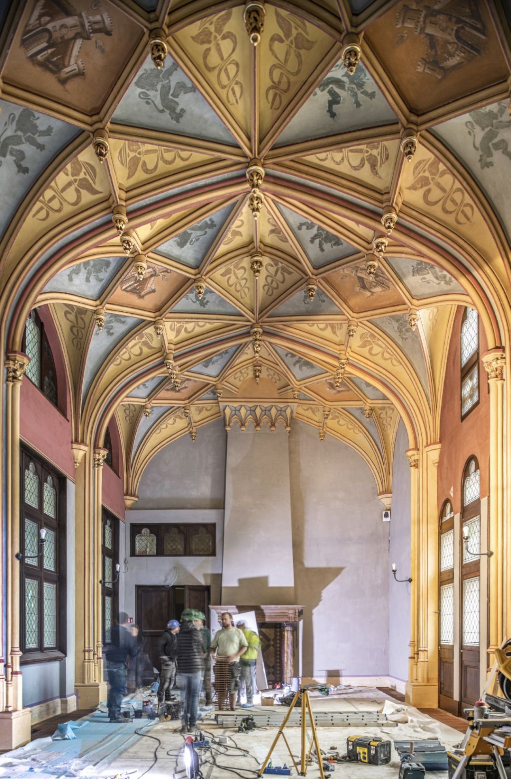 Les visiteurs de la Bourse « ressuscitée » seront d’emblée frappés par la richesse des couleurs: la charpente métallique de la toiture a abandonné sa couleur rouille pour retrouver son vert éclatant d’origine, qui met bien en évidence les décorations florales néo-gothiques de la charpente.
