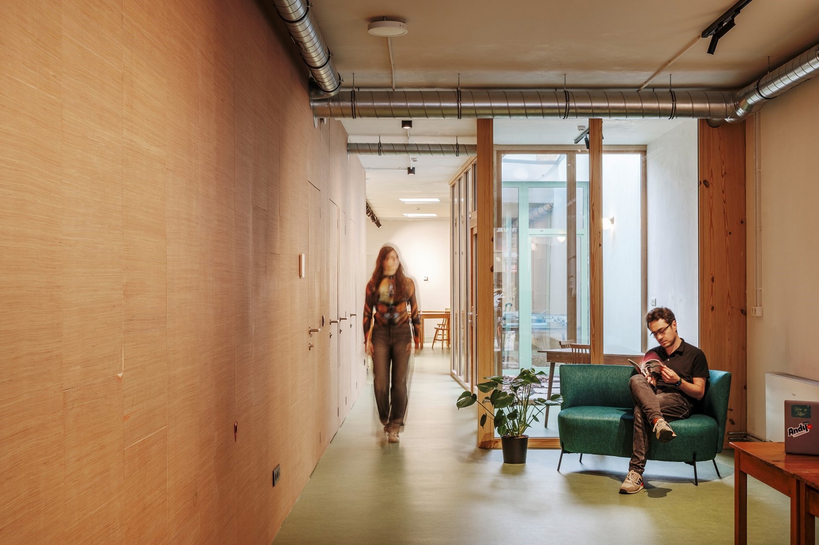 Toute rénovation suppose de la réutilisation, mais pour atteindre une circularité maximale, l'équipe de construction a redoublé d'efforts sur cet aspect. Tout d'abord, la configuration du bâtiment est restée inchangée : même après la rénovation, le siège provincial de Groen abrite un bureau et un jardin au rez-de-chaussée, ainsi que deux appartements à l'étage.