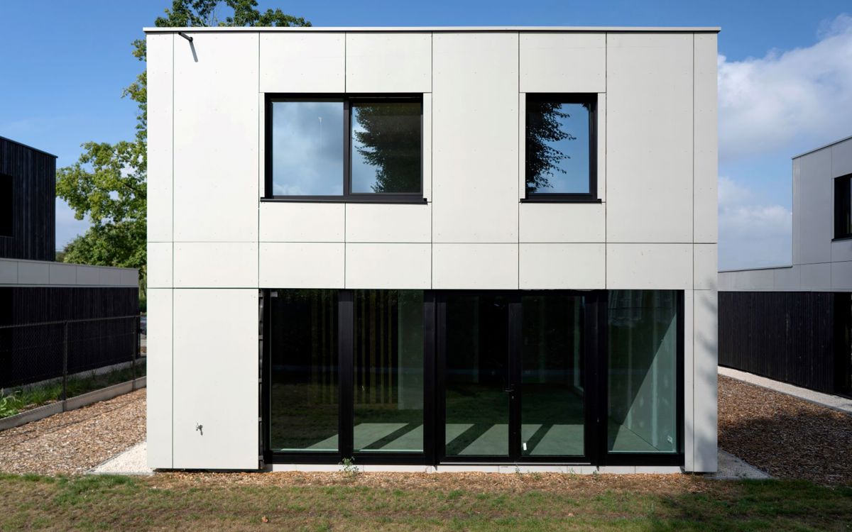 Trois matériaux principaux ont été utilisés pour les maisons : l'ossature bois avec les poteaux et les poutres, les CircuWallPanels et les panneaux de façade EQUITONE. « Nous avons rapidement décidé d'utiliser des panneaux légers pour les façades et le choix pour EQUITONE était donc évident. Pratiques et durables, ces panneaux de façade s'inscrivent en outre parfaitement dans ce concept circulaire grâce à leur application vissée, », explique Bart Janssens.