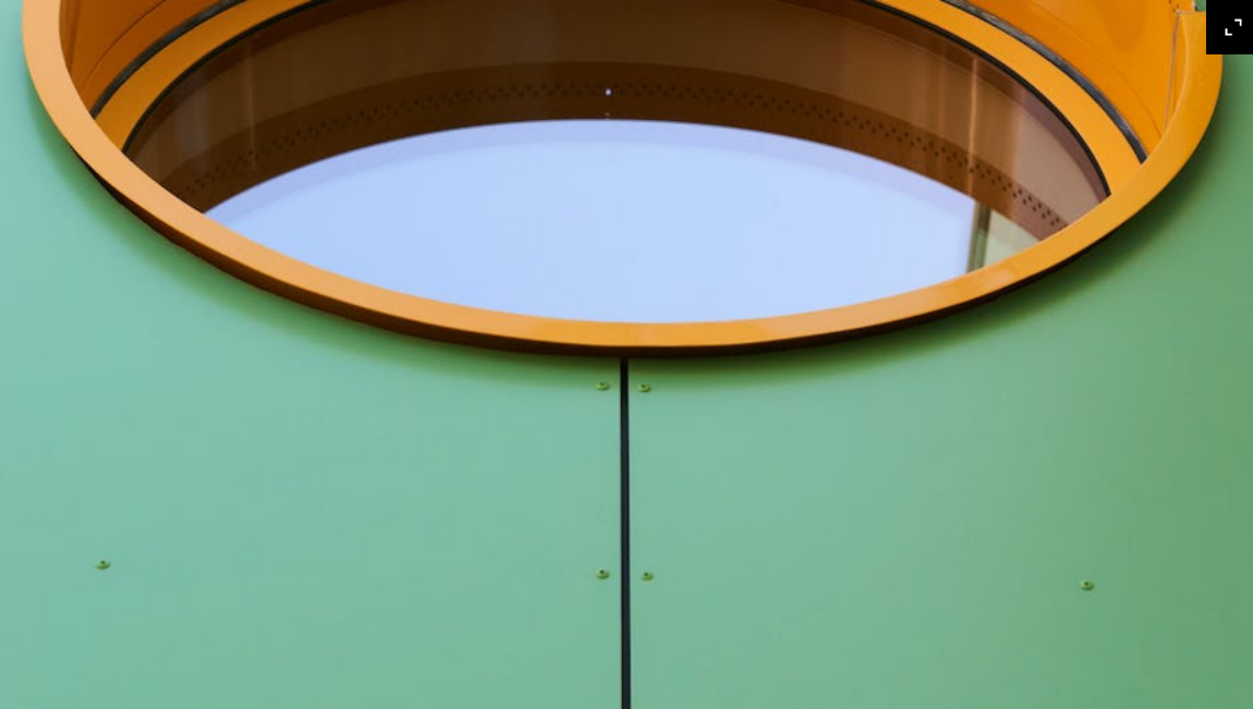 Une fois les formes définies, reste à trouver un revêtement de façade au design adapté : « Nous voulions appuyer ces choix architecturaux avec des couleurs liées à l’imaginaire de l’enfance. » Et c’est là que les panneaux de façade Rockpanel entrent en jeu : « En étudiant la documentation, je me suis aperçu que l’éventail des teintes proposées, notamment les plus vives, était très intéressant. » Résultat : la maison de l’enfance est aujourd’hui habillée d’un bardage aux couleurs chatoyantes et chaleureuses, faisant ressortir les différents éléments du programme. Soit une dominante orangée ou encore des tons verts : « Ces couleurs contrastent avec les autres matériaux de façade, la tour en béton brut et les soubassements enduits. »
