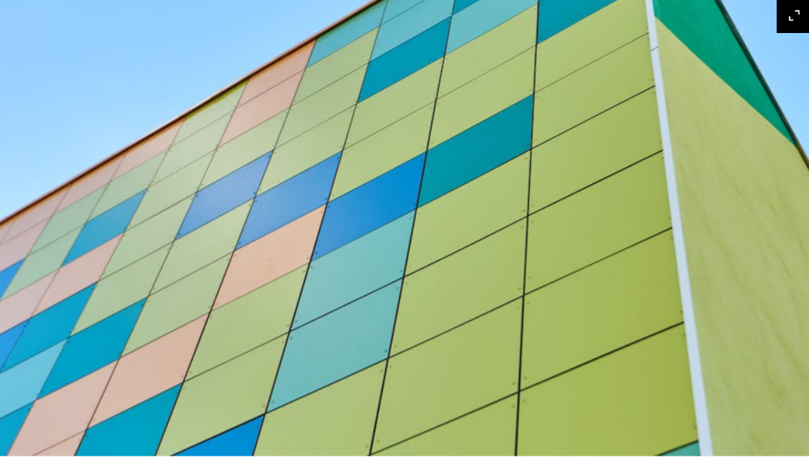 Ici une cabane, là une tour de château fort, partout de la couleur. La maison de l’enfance Max Barel, à Vénissieux, revendique ses clins d’œil à l’univers de l’enfance. Tout en apportant, grâce aux panneaux Rockpanel et à leur déclinaison chromatique, design, tenue au feu, contribution au confort thermique été comme hiver.