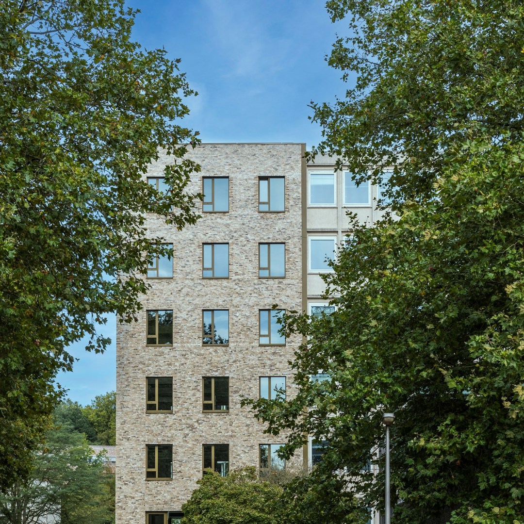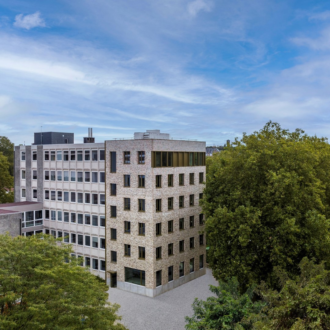 Sur le campus d'Arenberg, la KU Leuven a réalisé un projet d'extension pour sa faculté de Mathématiques. Les chercheurs de cette faculté bénéficient désormais de nouveaux bureaux, de salles de réunion et d'une cafétéria. Le bureau d’architectes RADAR a conçu cette extension selon des principes circulaires, dont un attire particulièrement l'attention, le système ClickBrick Pure de Wienerberger.