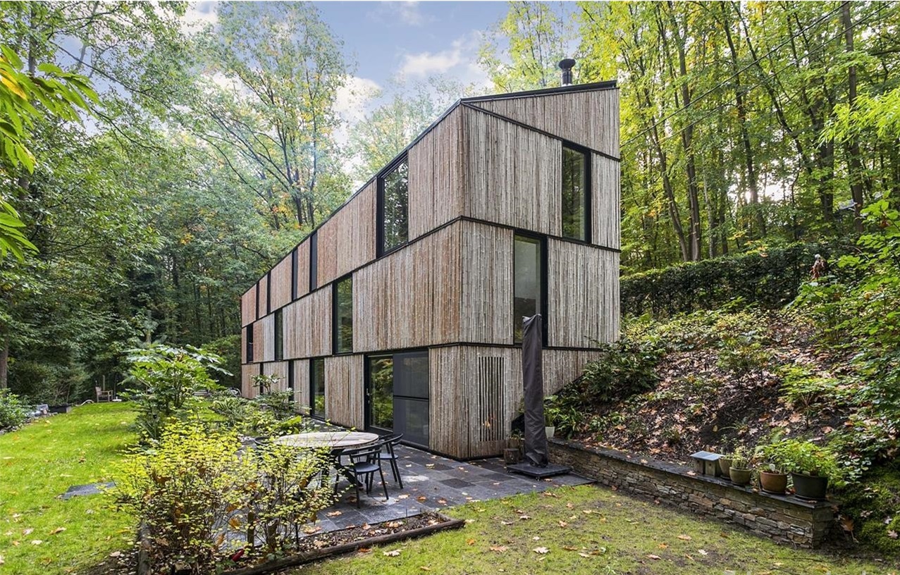 La maison unifamiliale de Rotselaar a été conçue il y a plus de 13 ans sur base de principes de conception durable. Une structure avec ossature en bois et un bardage en bambou permettent à la maison de s'intégrer de manière optimale dans son environnement très boisé. Le volume élancé répond aux exigences du site existant en s'encastrant partiellement dans la différence de niveau entre la rue et le jardin. À l'intérieur, la maison se caractérise par une succession d'espaces de vie ouverts qui reflètent la différence de niveau et renforcent les relations spatiales. Les positions des ouvertures de fenêtres sont également bien définies, afin d'encadrer les pénétrations de lumière naturelle et les vues sur la nature environnante. La maison est équipée d'un système de récupération et de traitement des eaux de pluie dans le jardin adjacent. Grâce à une pompe à chaleur, un chauffage par le sol, un système de ventilation et une orientation optimisée, la maison est particulièrement économe en énergie.