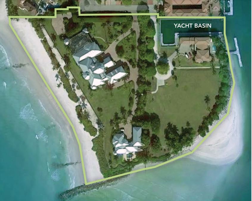 Le cœur de cette propriété, actuellement sur le marché, se compose de trois résidences distinctes, agrémentées d'un bassin de plaisance privé, le tout réparti sur 3,6 hectares. Si elle trouve preneur au prix demandé, un nouveau record immobilier sera établi. Actuellement, c'est le financier Ken Griffin qui détient le titre de la propriété la plus chère vendue aux États-Unis, avec l'acquisition d'un penthouse à Manhattan pour la somme vertigineuse de 240 millions de dollars.