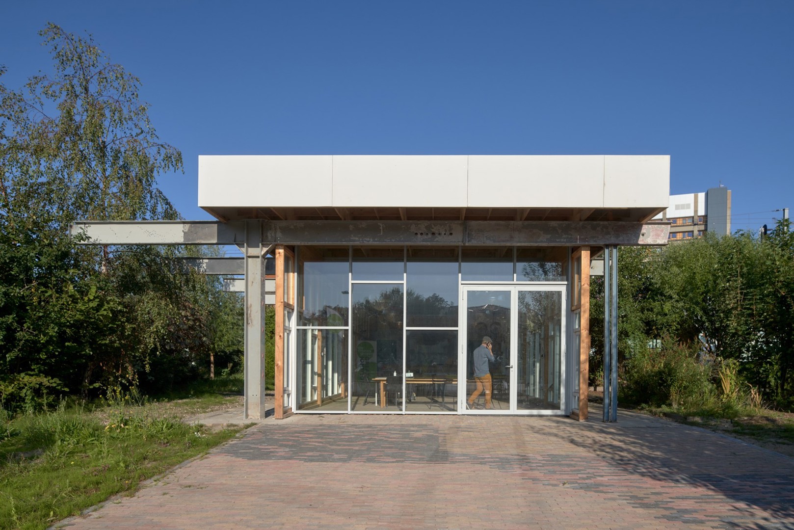 Ron Jacobs, responsable des ventes pour la Belgique et les Pays-Bas : « Les architectes de la Gare Maritime souhaitaient un système de profilés de façade démontable. Nous avons alors construit un modèle réduit pour montrer ce que nous pouvions produire et comment ce système de façade pouvait être démonté. Nous avons ensuite démonté proprement cette maquette, puis trouvé un nouveau propriétaire à Leiden, qui a intégré cette façade dans un pavillon conçu par le bureau Pompa ter Steege Architecten. La façade a été légèrement raccourcie. »