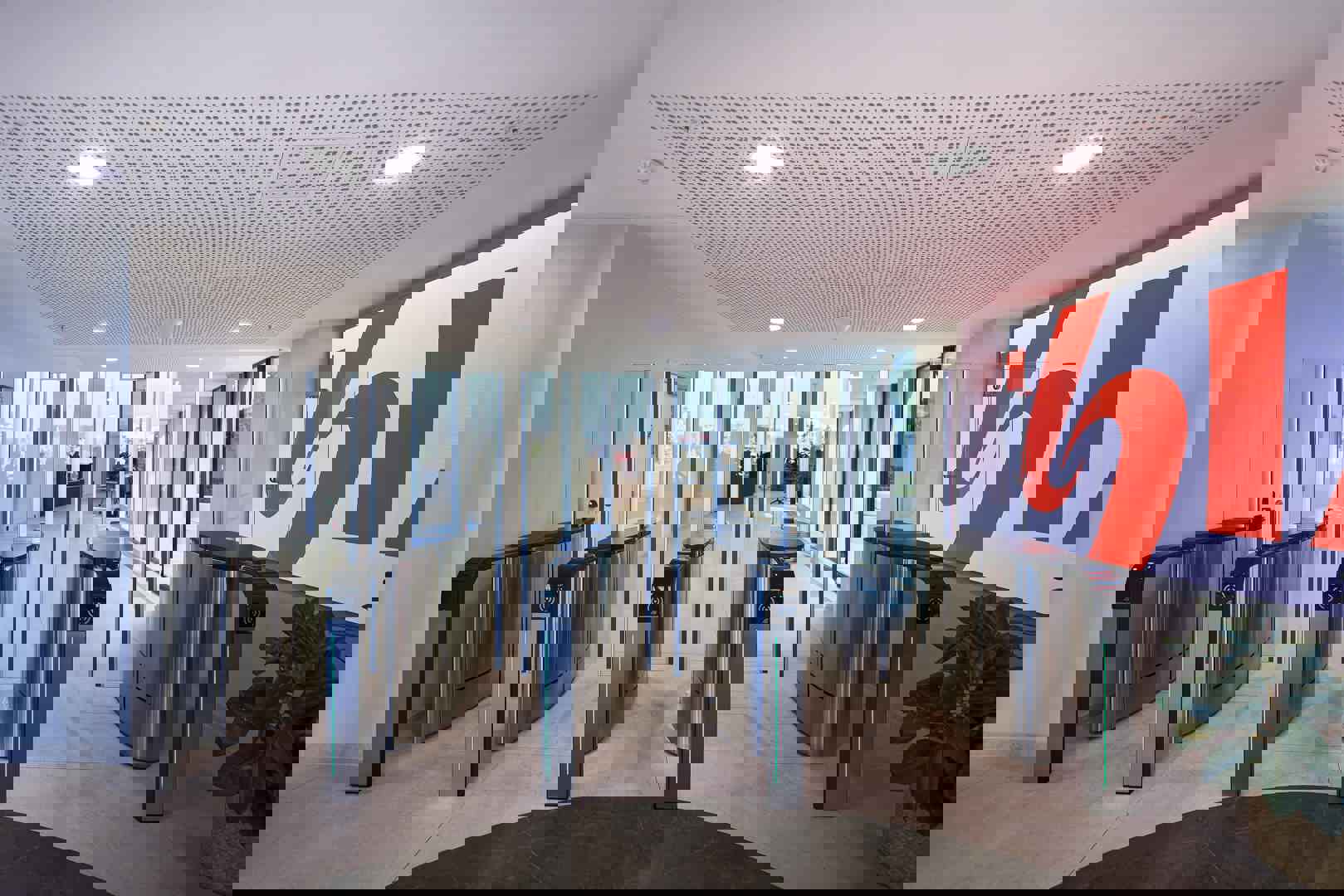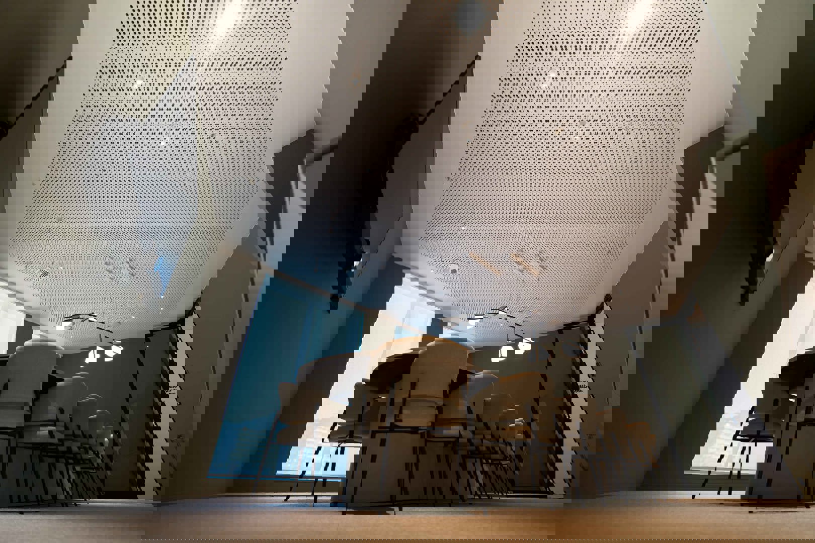 Pour la tour Ethias, le choix s’est porté sur les plaques Alternato Cleaneo SoundDesign (12 et 20 mm). Ces plaques de plâtre perforées assurent une absorption acoustique optimale et réduisent significativement le temps de réverbération dans des espaces très fréquentés tels que le hall d’entrée.