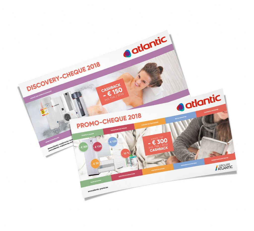 Il vous suffit de demander votre PROMO-CHEQUE sur le stand d’Atlantic à Batibouw (stand 12415), à votre installateur Atlantic ou ( à partir du 15/02) via le site www.atlantic-promo.be.