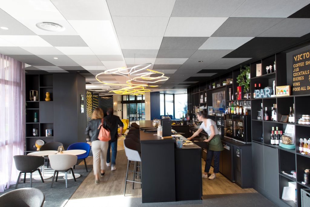 Le jaune nous rappelle le soleil et nous remplit d'optimisme, de positivité et de confiance en soi. Si les jaunes vifs sont trop stimulants pour le contexte, pensez au jaune moutarde, safran ou à des tons jaunes plus doux. Le rouge nous stimule physiquement. C’est l’équivalent d’un double expresso ! Si vous trouvez les rouges forts trop stimulants, essayez des tons plus clairs comme la pastèque et les rouges doux, que nous appelons rose. Le bleu est bon pour les espaces où vous voulez que les gens puissent réfléchir, se concentrer et réfléchir.