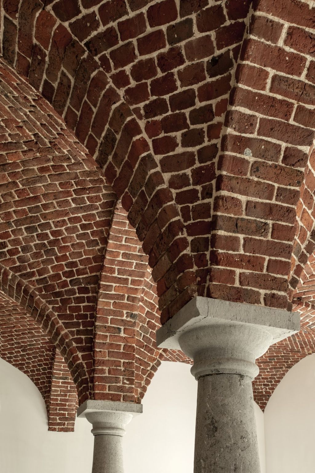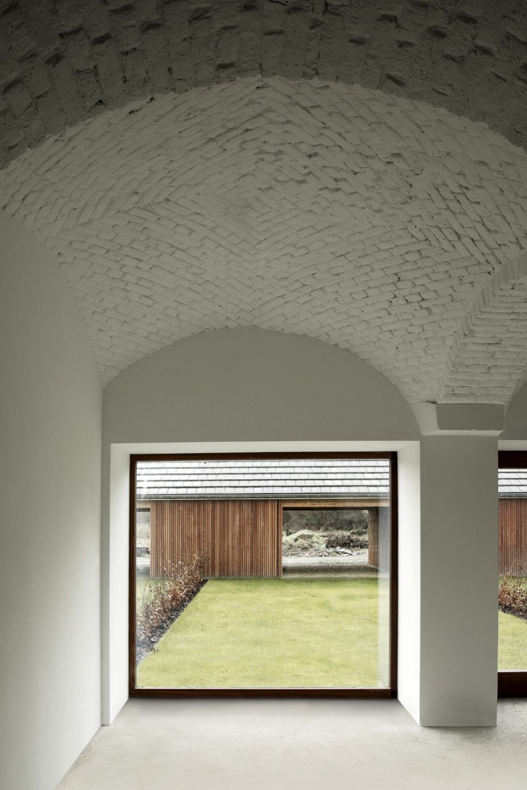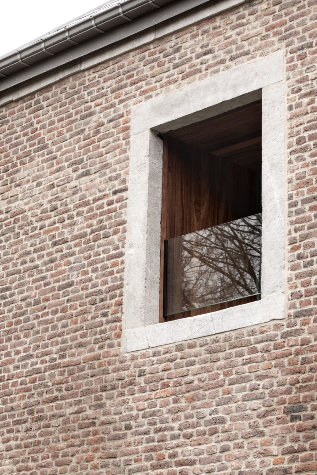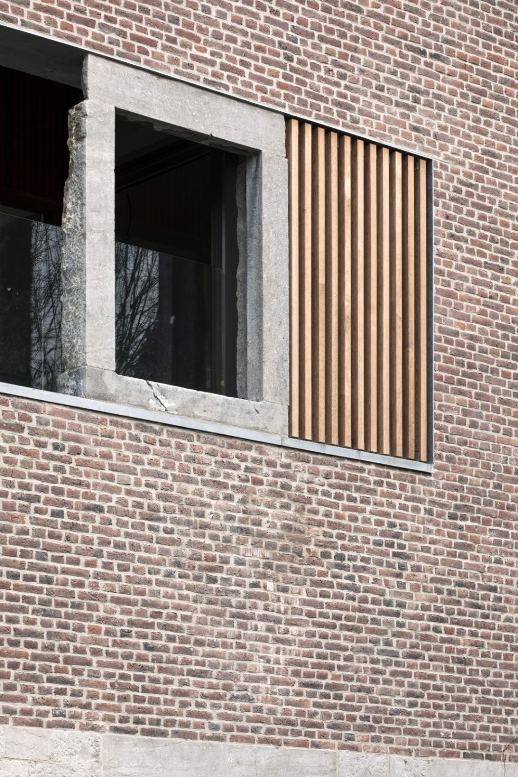 Là était le principal défi : conserver au maximum les qualités du lieu et des bâtiments tout en y développant un cadre de vie de qualité. Les façades existantes ont pu être conservées, avec leur rapport des pleins et des vides. Les architectes ont fait le choix d'ouvrir certains espaces en façade pour un apport de luminosité à l'intérieur, tout en gardant les lourds et anciens encadrements de fenêtre en pierre. On a également préservé les voûtes et la cour intérieure. « L’apport de nouveaux matériaux est donc fortement réduit », reprend Olivier Fourneau. « C’est en agissant de la sorte, en questionnant le potentiel de chaque élément existant, en place, en le respectant, que l’on évite une consommation de nouveaux produits. »