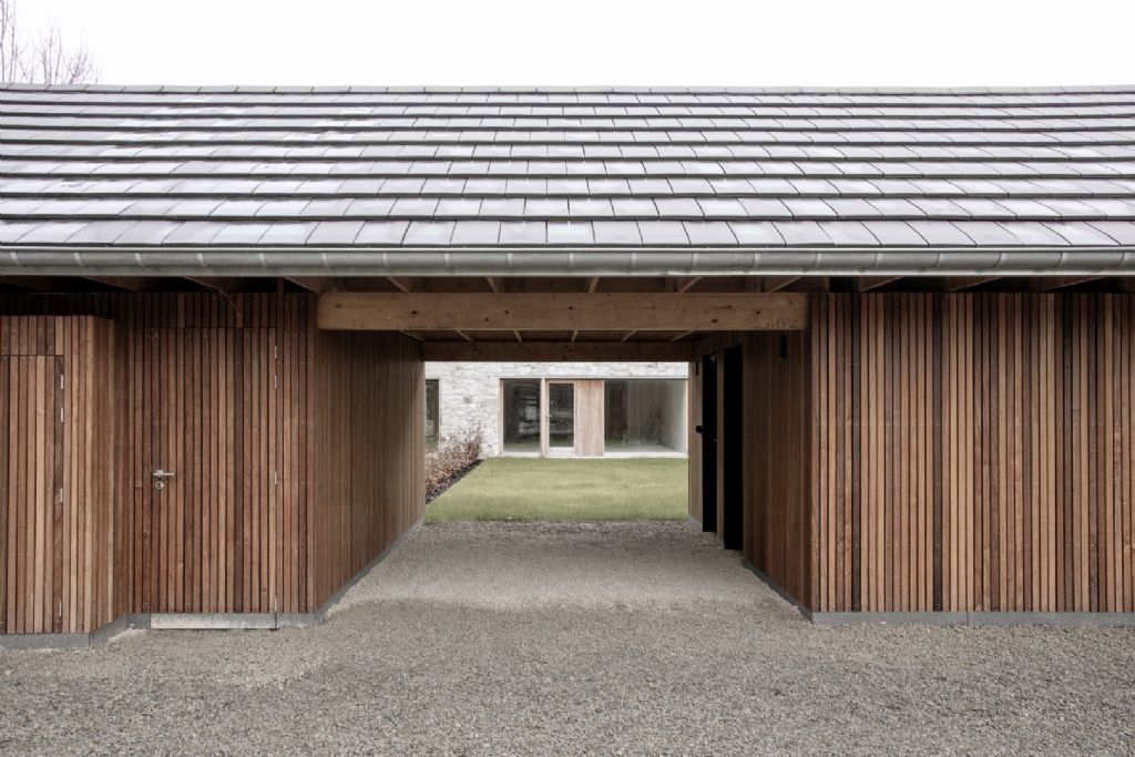 « Le site est assez exceptionnel, de par sa situation le long d’une rivière et accolé au château », explique Olivier Fourneau. « L’objectif était donc de venir y intégrer sept lieux de vie, profitant au maximum des potentialités du site, tout en conservant de l’intimité pour chacun, pour les voisins, et en adoptant une attitude discrète. Le projet a consisté a développer des logements respectant la structure existante de la ferme. Une diversité de l’organisation des logements en découle. On trouve des habitations unifamiliales mitoyennes dotées d’un grenier aménageable, d’un jardin et d’un carport avec rangement extérieur. On y trouve également des logements de plain-pied et des duplex, profitant notamment des charpentes existantes. »