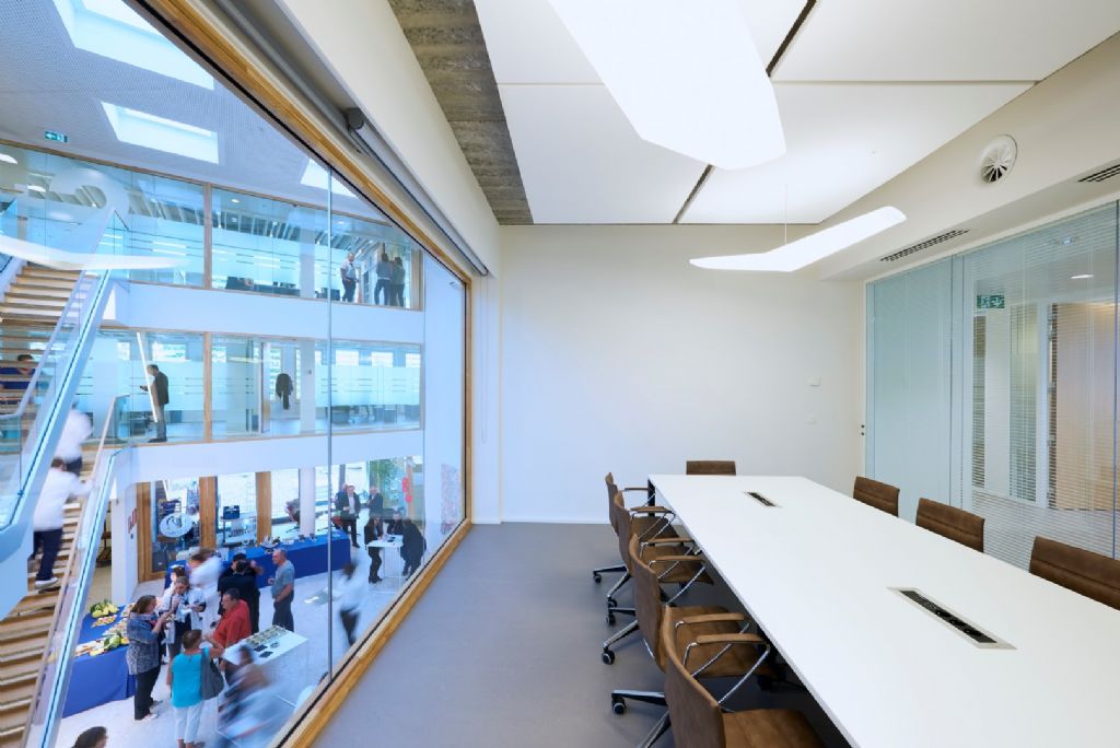 Au cœur de ce futur bâtiment de 3 niveaux, un hall central sur toute la hauteur distribue de manière conviviale les différents départements administratifs en mettant l’accent sur la transparence et la qualité des échanges entre les personnes. Au rez de chaussée, certaines affectations sont accessibles à des visiteurs externes dont notamment une salle polyvalente destinée par exemple à de petites conférences ou exposés à caractère médical ou scientifique.