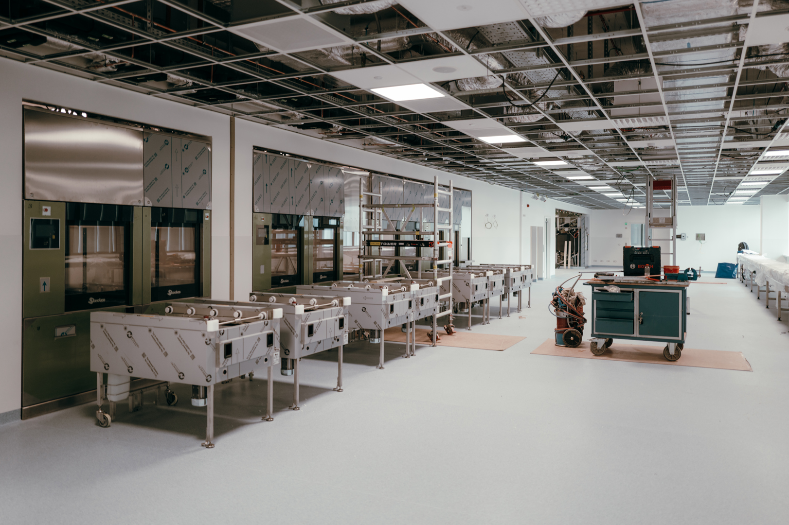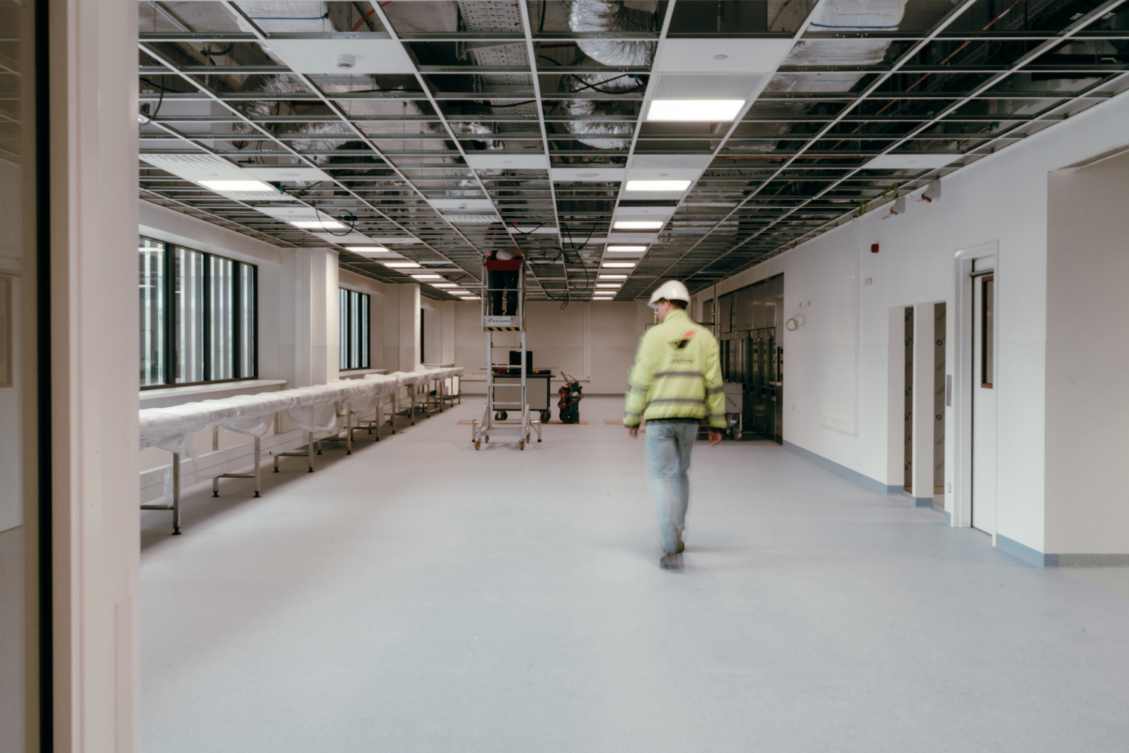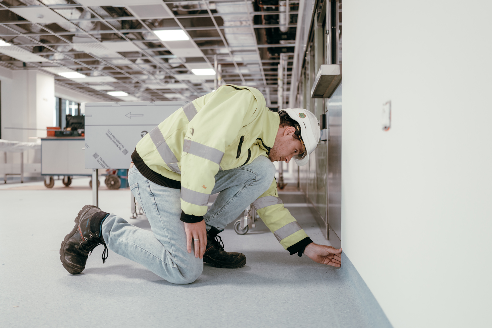 Sur le campus hospitalo-universitaire de l’UZ Brussel (VUB), le cœur de l’hôpital est visible depuis quelques mois. Ce nouveau bâtiment fait partie de la phase 2 du plan directeur 2030 visant à rénover l’UZ Brussel d’ici fin 2029. Le bloc abritera notamment des locaux de chirurgie, un centre de dialyse rénale, des locaux d’imagerie médicale, un centre d’oncologie et des soins intensifs. Depuis 2023, le Group Jansen est coresponsable de l’installation des techniques et de la finition du bâtiment hospitalier emblématique. Ici, nous combinons le savoir-faire de Jansen Building Projects, Jansen Ceiling Solutions, Jansen Cleanrooms & Labs, Jansen Joinery et Jansen Wall Solutions. Une tâche de coordination que le chef de projet Sven Van de Putte et ses 11 collègues chefs de projet ont bien du mal à mener à bien. “Un hôpital est donc un environnement très difficile en raison de la multitude de techniques. Vous n’en rencontrez que quelques-unes dans ce type de projet, comme les gaz médicaux, la tuyauterie, etc.