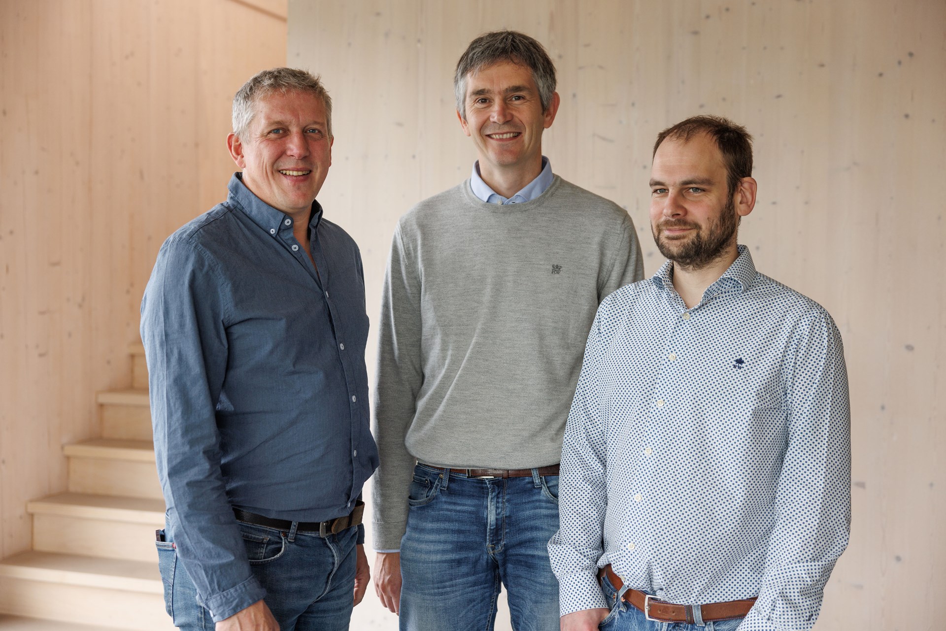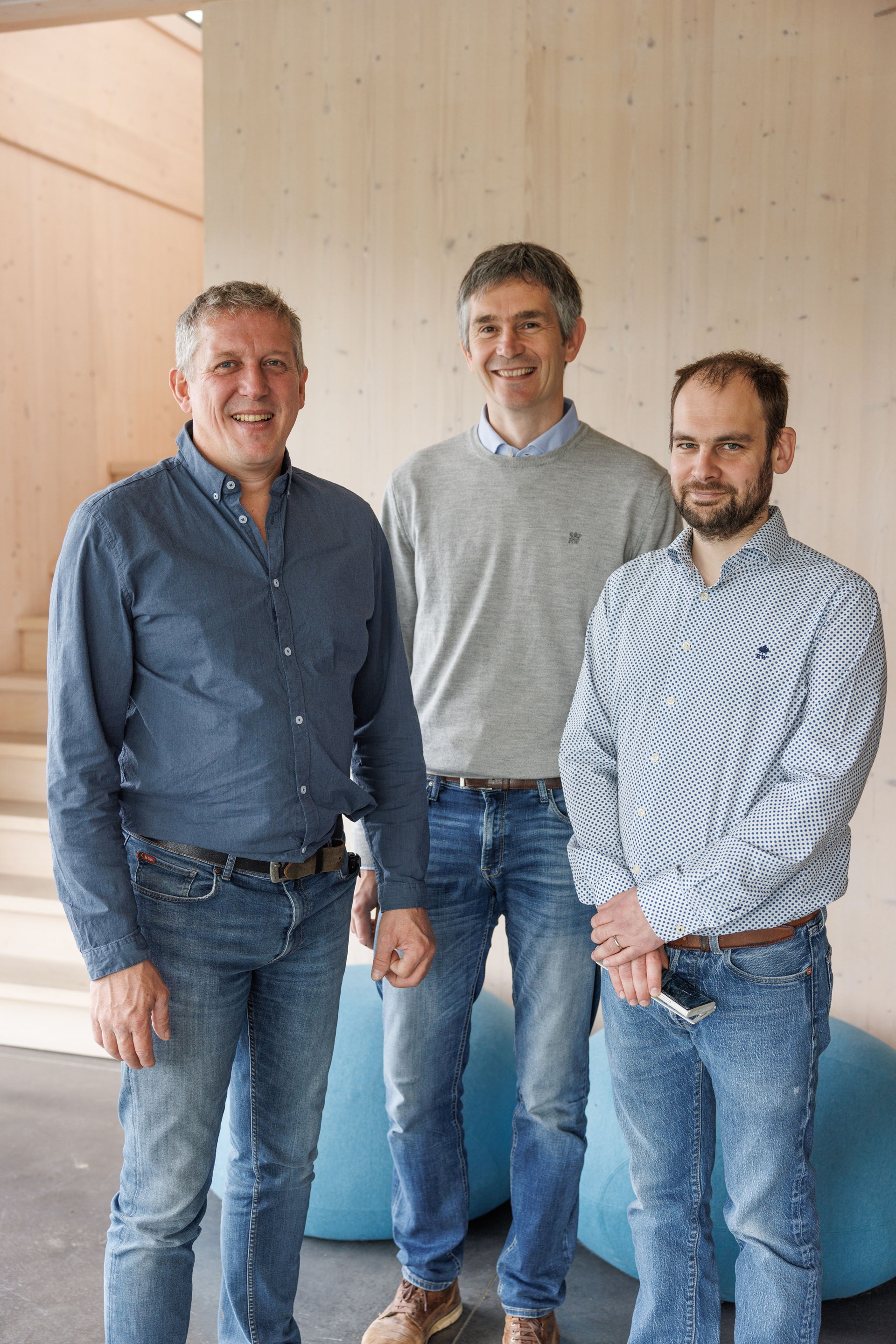 Laurent Riche (Stabilame, construction bois), Maxime Verwilghen (Bureau d’Architecture Esquisse), Arnaud Ligot (CBlue, propriétaire).
