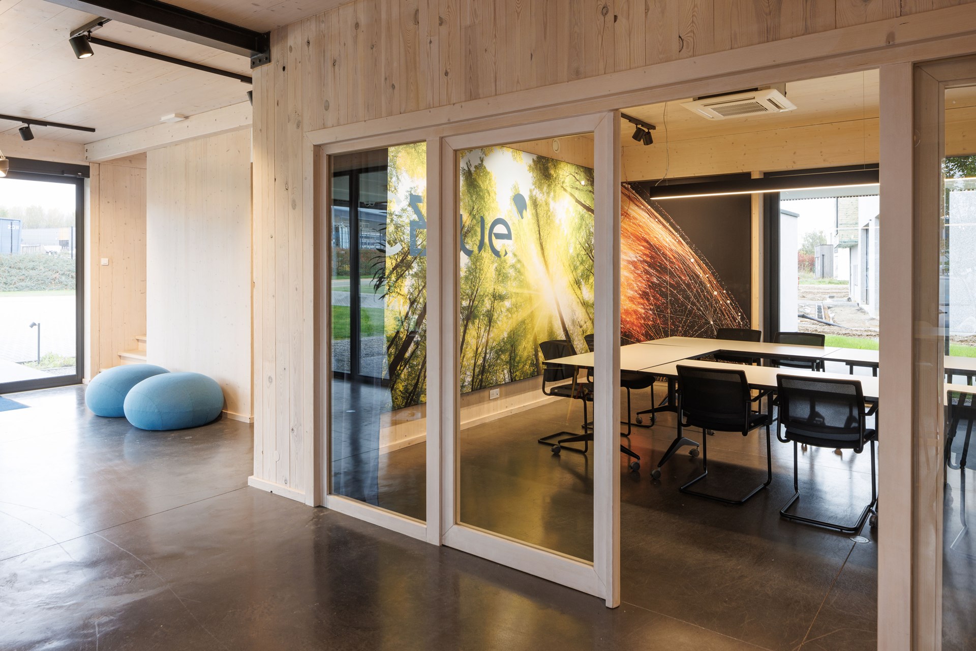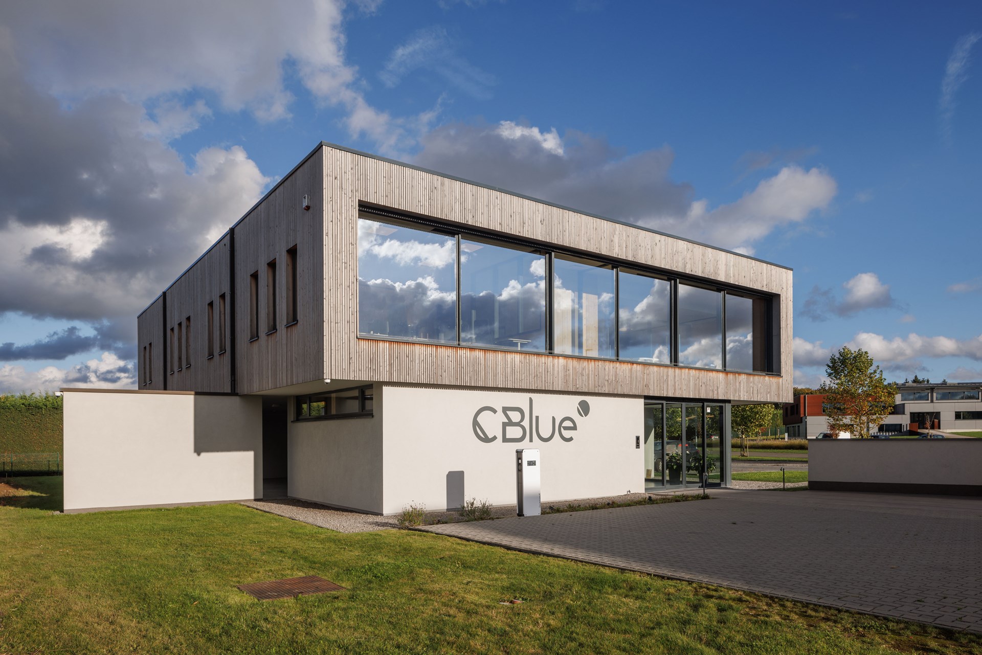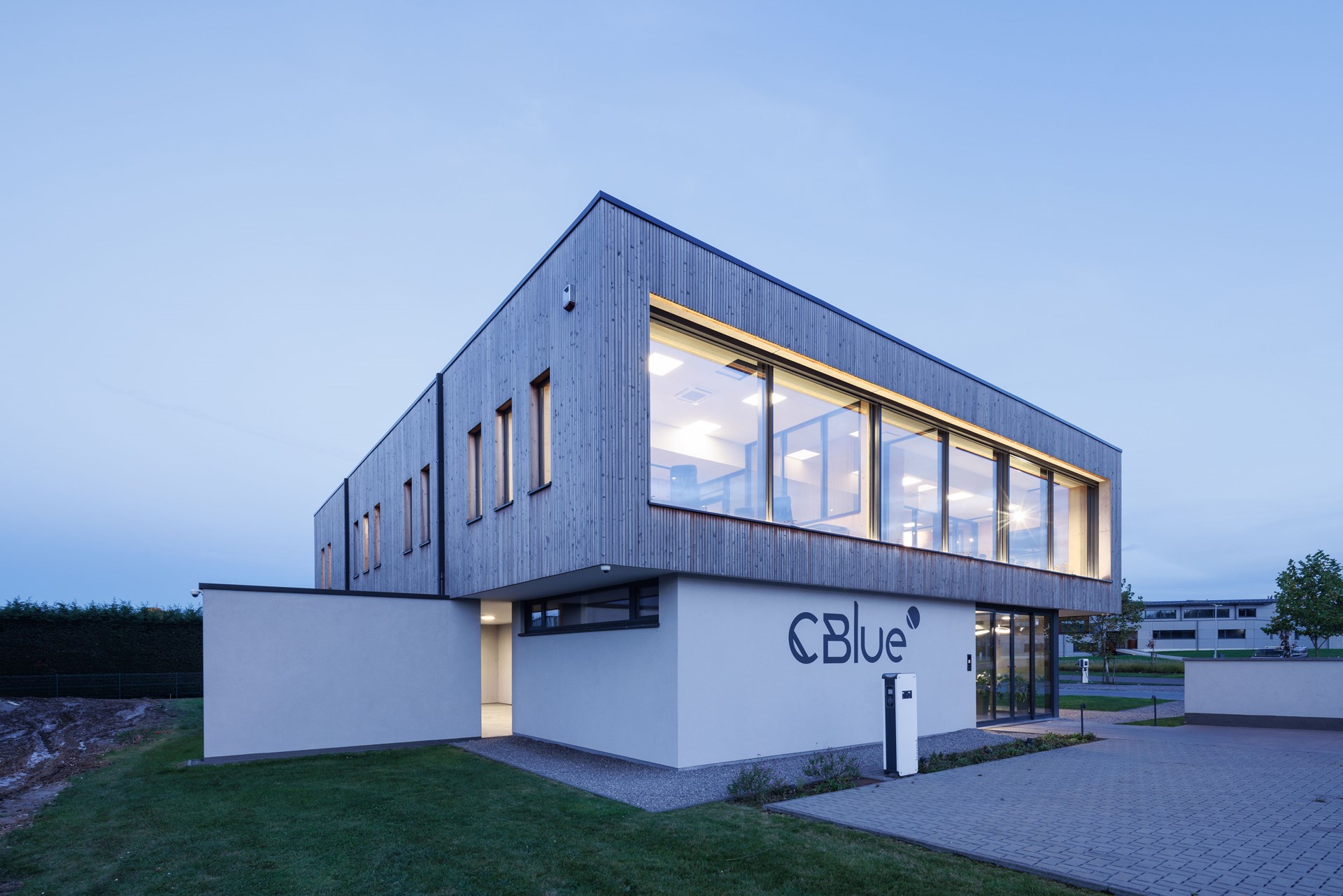 La force de CBlue, c’est l’équipe qui a porté le projet, depuis le départ, avec des volontés communes de solutions à la fois rationnelles, économiques et environnementales. Le propriétaire du bâtiment, la société CBlue, une entreprise informatique, a dès le départ marqué sa volonté de construire durablement, et de compenser le carbone informatique produit par son activité. L’architecte, Maxime Verwilghen, architecte associé au Bureau d’Architecture Esquisse (Andenne) , a apporté des solutions d’architecture bioclimatique (anti surchauffe,…), de luminosité intérieure et transparence, et de modularité. Le constructeur, Stabilame, a quant à lui apporté la solution bois, en respectant des circuits courts (matériaux fabriqués à 50 km du chantier), son expertise en optimisation : apporter le bon matériau, au bon endroit et dans la bonne quantité, des solutions d’évolutivité dans le bâtiment, ainsi que des matériaux d’ingénierie bois (CLT collé et lamellé-collé fabriqués à Mariembourg) et des châssis avec des certifications environnementales.