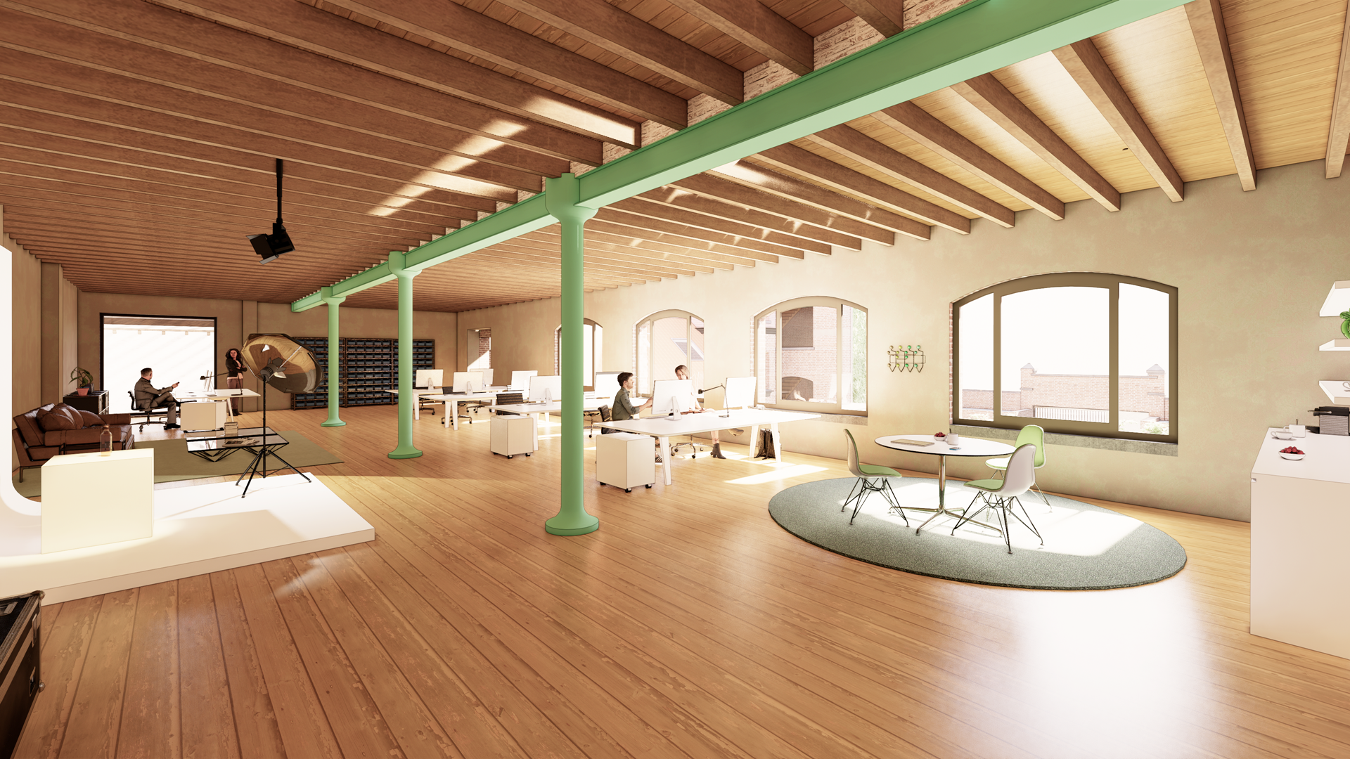 Les ateliers situés à l'arrière abriteront trois espaces de travail et un atelier destiné à des artisans. L'un des espaces de travail accueillera quant à lui le nouveau siège d'A2D, concepteur de l'ensemble du projet de reconversion. Le bureau d'études ne louera pas l'espace. En effet, il a acheté le bâtiment historique pour mener à bien ce projet. Les autres espaces de travail, les studios et les unités résidentielles seront vendus par A2D.