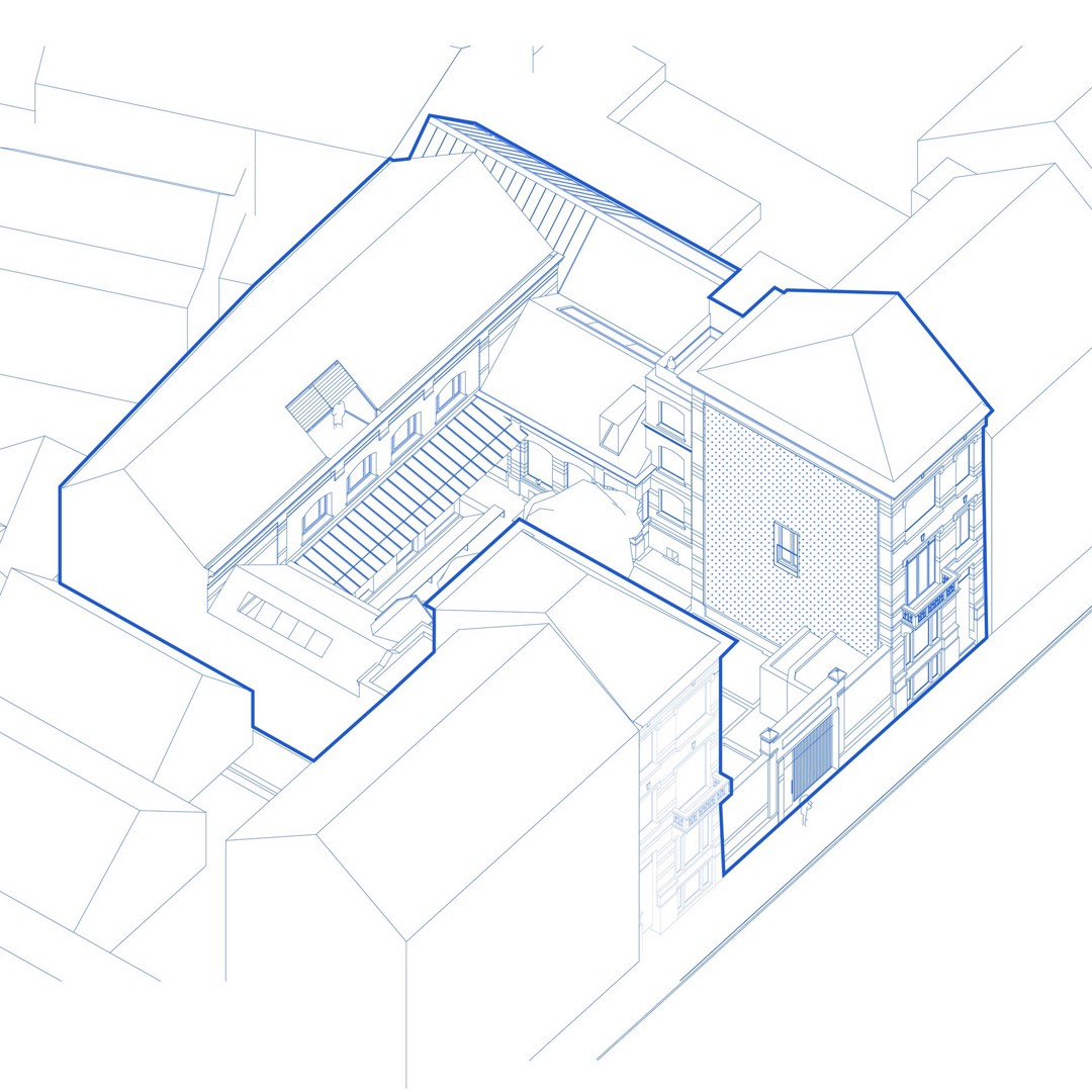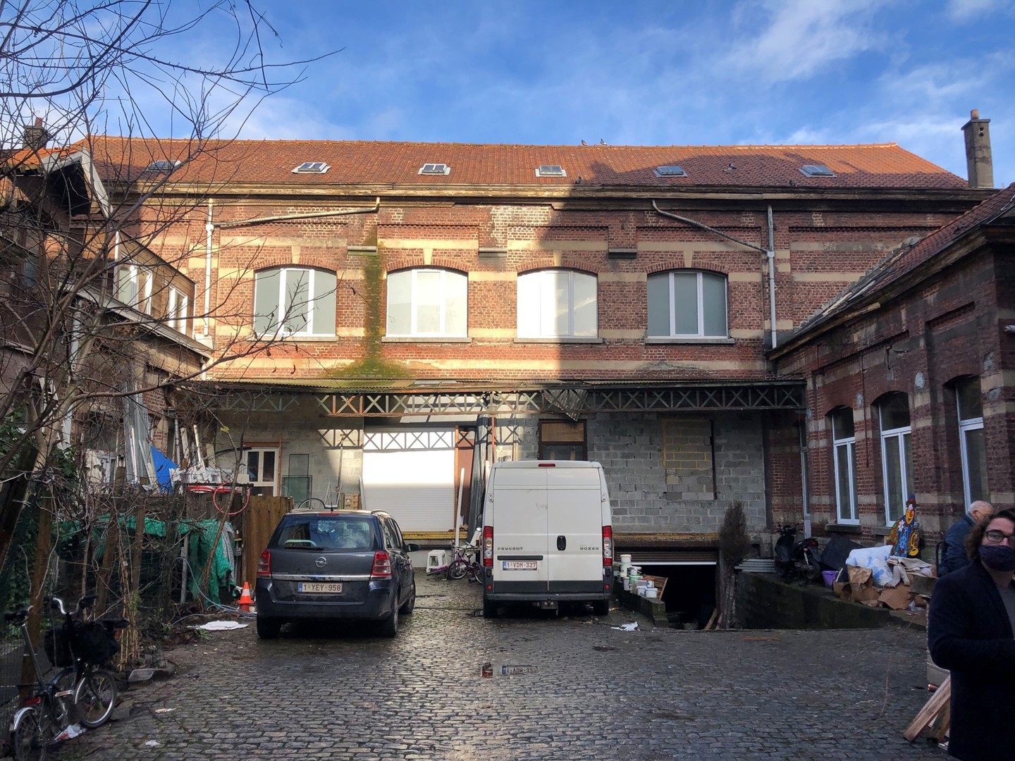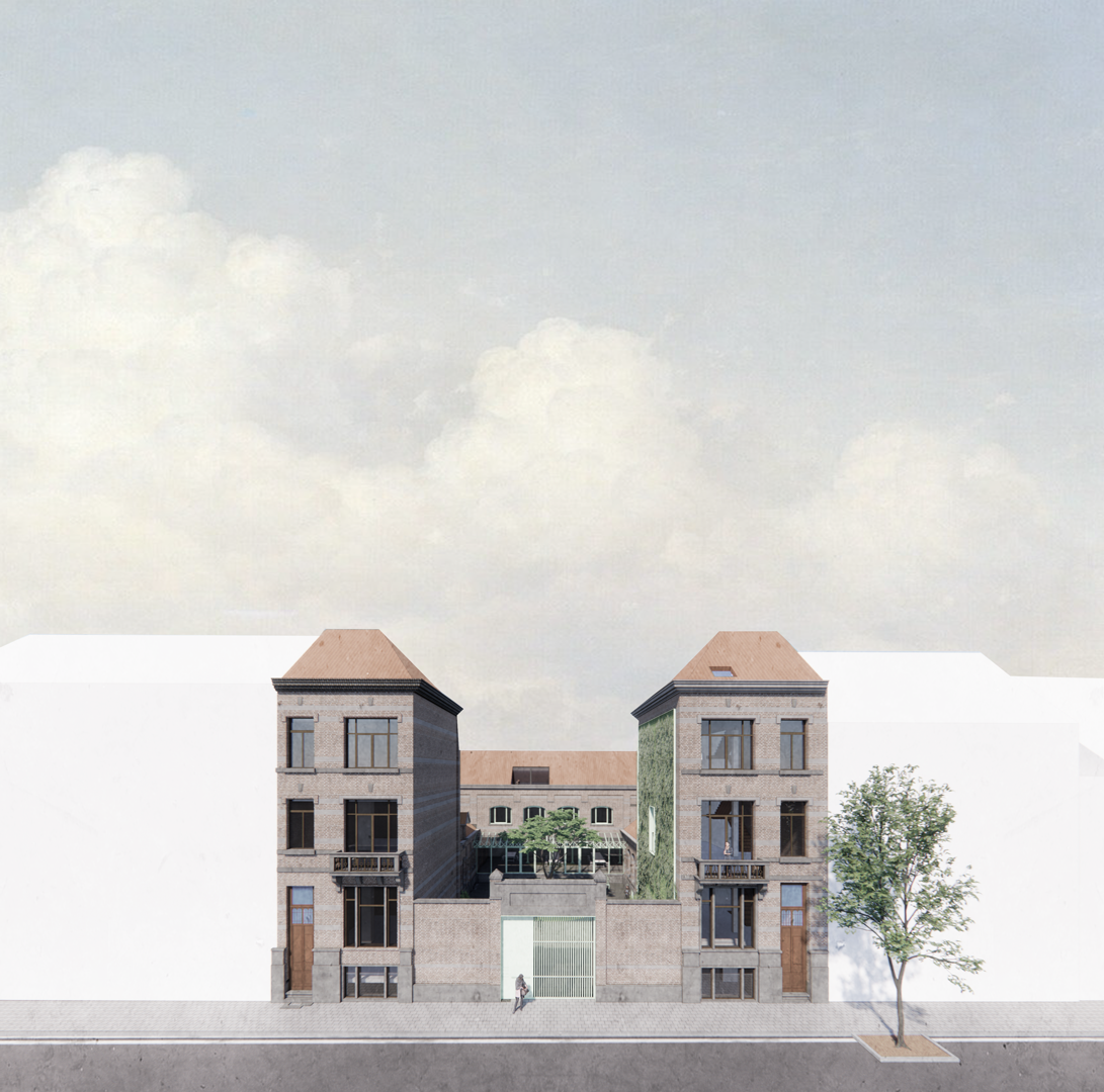 A2D a concrétisé le premier pilier en adaptant le programme au bâtiment plutôt que de travailler dans l'autre sens. Ainsi, afin de préserver la valeur architecturale de la maison à étages située à l'arrière, il a été décidé de l'utiliser comme espace de travail, et les structures existantes tout comme les ouvertures dans les murs ont été reprises dans le plan. Une section de bâtiment trop haute au regard des règles d'urbanisme a pu être conservée en la transformant en jardin d'hiver. La structure en bois de la toiture de ce jardin d'hiver a été recouverte de panneaux transparents. Ce volume ne fait pas partie du volume protégé et n'est pas climatisé. La température du jardin intérieur évoluera donc au fil des saisons. Selon A2D, cet élément devra être testé dans la pratique pour déterminer dans quelle mesure l'espace peut être intégré de manière fonctionnelle dans les studios.