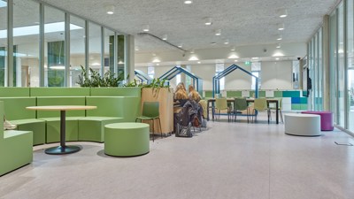 Le responsable des installations note que le sol en linoléum de DLW a également un effet atténuant sur le bruit de marche produit par les nombreux enfants. Il s'en amuse : "On se croirait parfois dans un poulailler, alors tout ce qui peut atténuer le bruit est bon à prendre. Et ce sol le fait incroyablement bien".