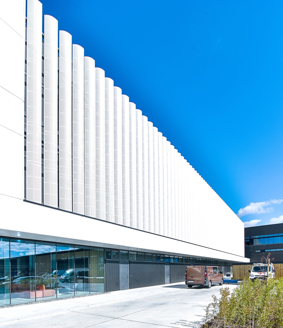 Le centre de distribution et le nouveau siège administratif, qui représentent ensemble +/- 90 000 m², représentent un bel exemple de construction circulaire. « 90% des matériaux utilisés pourront être recyclés tout en gardant une très grande valeur », explique Nicolas Karadjian, architecte chez AAVO Architects. « Ils seront réutilisés comme matière première primaire ou secondaire, par exemple dans le secteur de la construction. Ce sera aussi le cas pour le béton utilisé pour les voies d'accès et les sols, les éléments en béton des façades, les panneaux de toiture, les planchers d'étage, l'aluminium des fenêtres, l'acier des structures porteuses secondaires, le câblage électrique, le bois pour la finition intérieure... Tous ces matériaux ont également été mis en oeuvre de manière à pouvoir être enlevés de manière réfléchie en cas de changement d'utilisation ou de finalité. »