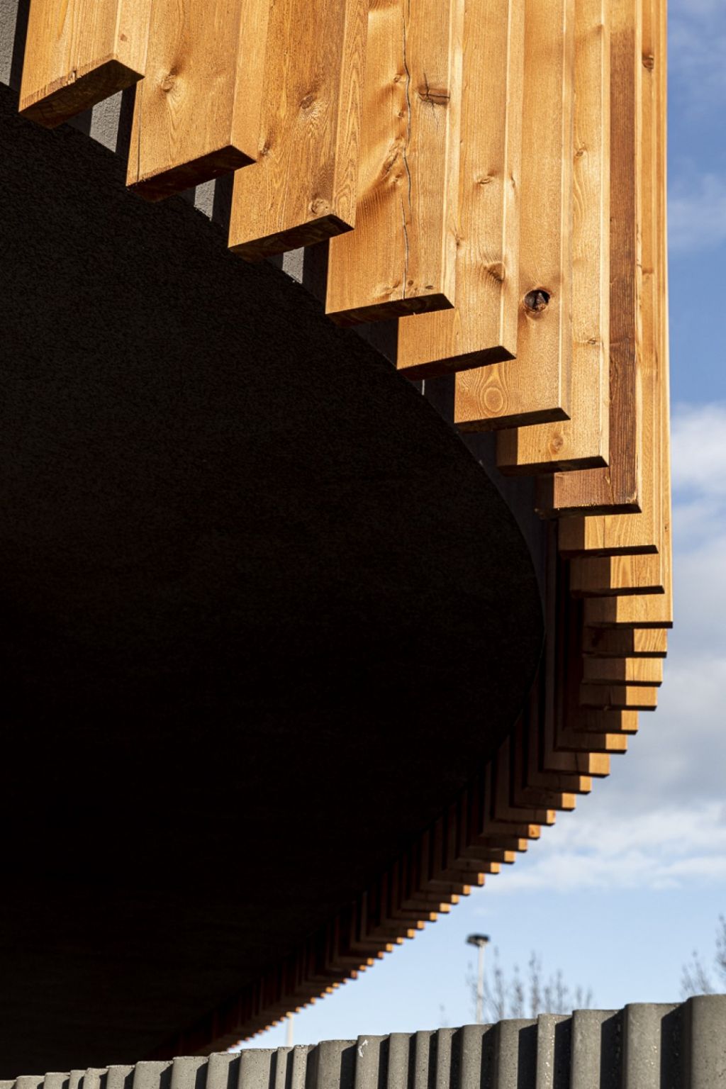 Toute la conception s’est basée sur un jeu de dualités : « une dualité de forme tout d'abord puisque le caractère rectiligne et orthogonal du soubassement est en opposition avec la douceur et la légèreté du volume de bureau de l’étage tout en courbe. De plus, l’espace généré sous le porte-à-faux se veut 'protecteur' et accueille les visiteurs vers l’entrée principale. Une dualité de matériaux ensuite, par l’emploi du béton architectonique, qui confère à l’ensemble une force, toujours en relation avec la fonction, en opposition avec le bardage en bois, qui permet une perception plus chaleureuse de ce volume. » Les auteurs de projet ont également souhaité mettre en œuvre des matériaux faciles d’entretien, durables et produits dans la région.