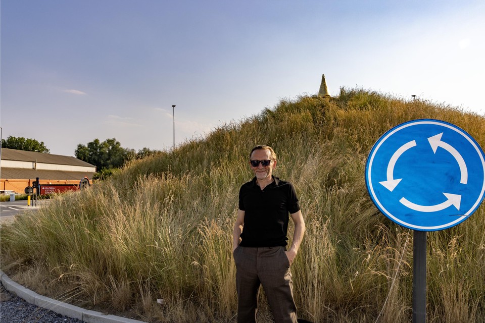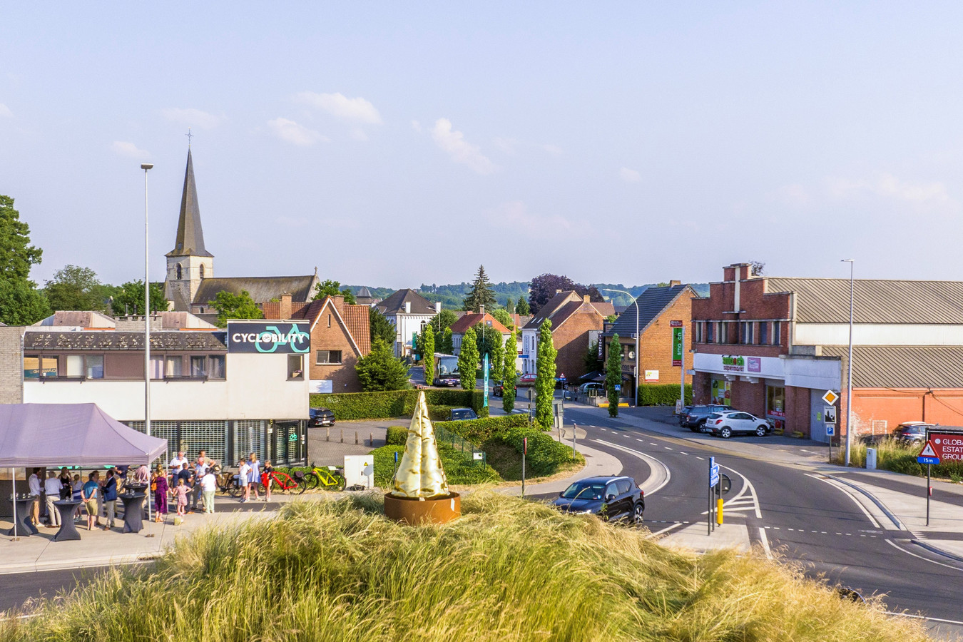 Le cône d'or de Michaël Borremans décore le rond-point de Kluisbergen