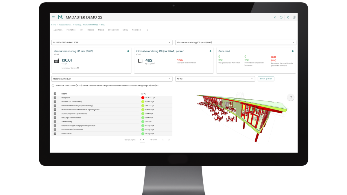 La reconnaissance de Madaster comme outil validé pour le calcul de démontabilité souligne la fiabilité de l'outil. Le processus de calcul a également été automatisé dans Madaster grâce à l'intégration BIM. Il est donc encore plus facile pour les utilisateurs de Madaster de mesurer la démontabilité et ainsi améliorer la conception et la construction finale à ce niveau.