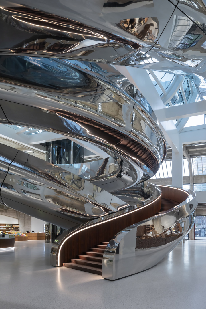 Installé dans un entrepôt de 16.000 m², le FENIX Museum conserve l’âme brute du bâtiment d’origine et l’élève – au sens propre comme au figuré – grâce à une structure spectaculaire baptisée le Tornado. Conçu par MAD Architects, ce chef-d’œuvre architectural ondule au-dessus du toit telle une respiration ascendante.
