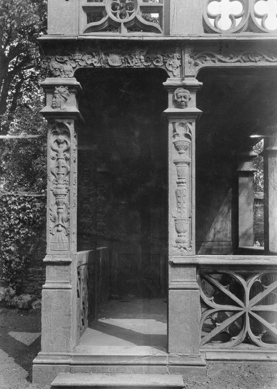 Datant de 1531, ce Pavillon Renaissance est considéré comme le seul exemple connu d’architecture civile Renaissance de la Ville. Il se distingue par sa forme unique de portique ajouré, une typologie qui a pratiquement disparu de nos régions. Réalisé en calcaire et coiffé d’un plafond en chêne sculpté, le monument est richement décoré de gravures et de bas-reliefs. Il porte également les armoiries impériales de Charles Quint, ce qui est rare sur un bâtiment privé et qui soulève de nombreuses questions sur le statut du commanditaire.