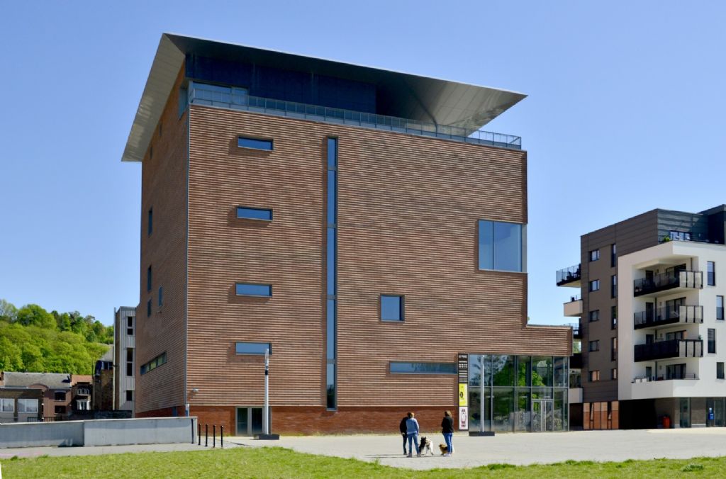 L’inauguration publique officielle du Phare à Andenne aurait dû avoir lieu le 26 mars dernier mais elle a été reportée pour cause de confinement. Ce bâtiment était à l’origine une école secondaire de la Communauté Française, dotée d’une superbe piscine de style Art Déco. Le bâtiment a connu une transformation-extension pilotée par l’Atelier d’Architecture aiud, en collaboration avec le célèbre architecte français Rudy Ricciotti, et accueille désormais une bibliothèque communale, des musées et une salle polyvalente avec terrasse panoramique. L’équivalent de 2662 m² en rénovation lourde et 1113 m² de construction neuve, pour un montant d’un peu plus de 7 millions €.