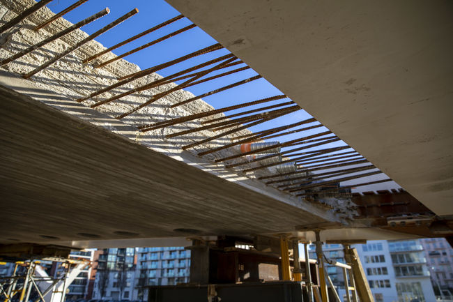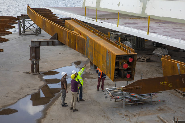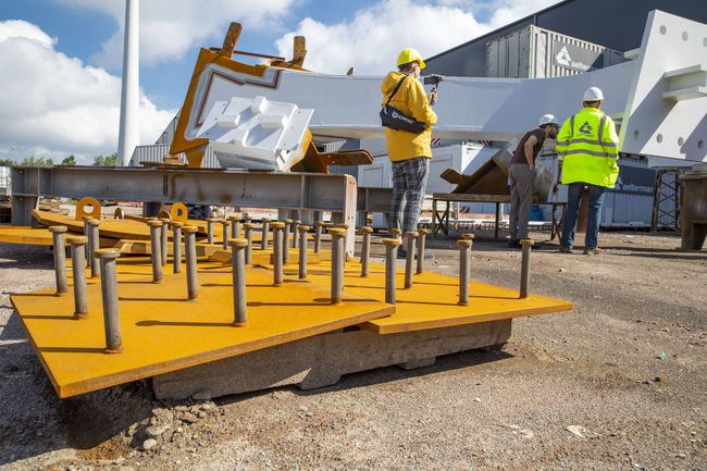 Les structures métalliques d’un poids de 1200 tonnes ont été créées dans un atelier à Gand, spécialisé dans la construction métallique, puis acheminées par péniche. La structure métallique de la partie cyclo-piétonne a été construite en atelier près de Courtrai.