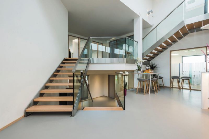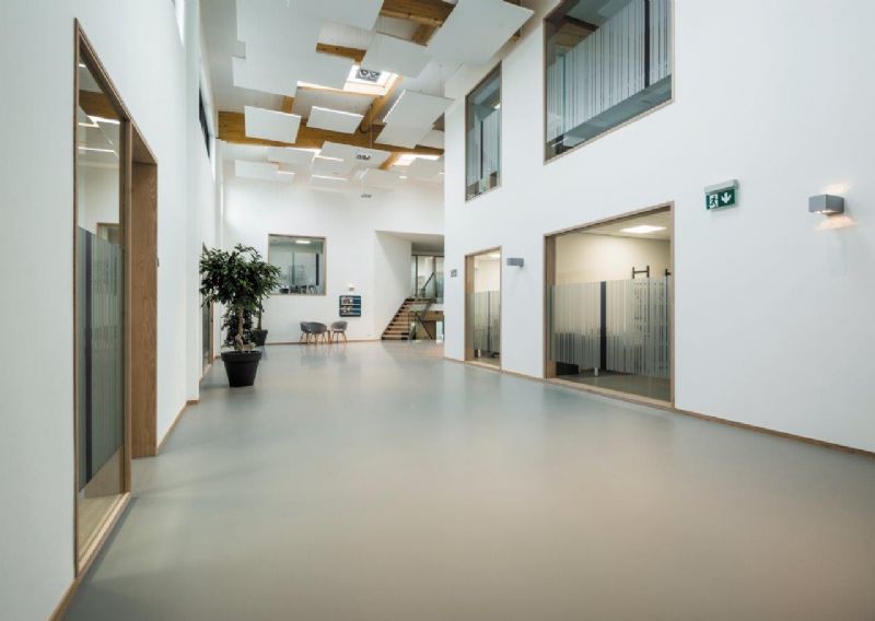 Le revêtement de sol a fait l’objet d’un traitement particulier au niveau des différents locaux administratifs (hall, bureaux, salle de réunion, sanitaires, etc...). Ces derniers devaient être revêtus d’un sol résistant à l’usure, compatible avec un chauffage sol, facile à entretenir, réduisant le bruit et confortable, tout en présentant un look moderne.
